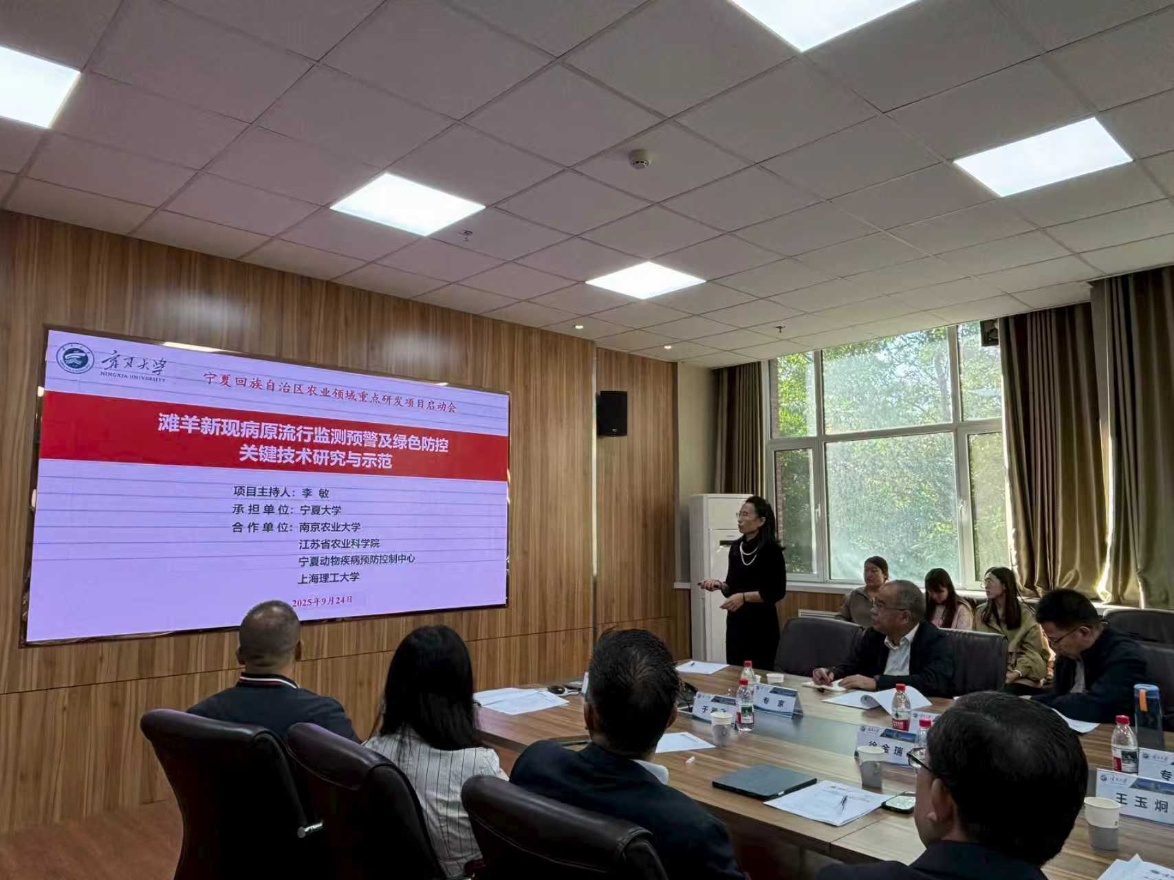 【beat365唯一官方网站新闻中心讯 生命科学学院】9月24日上午,宁夏重点研发计划项目“滩羊新现病原流行监测预警及绿色防控关键技术研究与示范”启动会在beat365官网文萃校区民志楼203会议室召开。