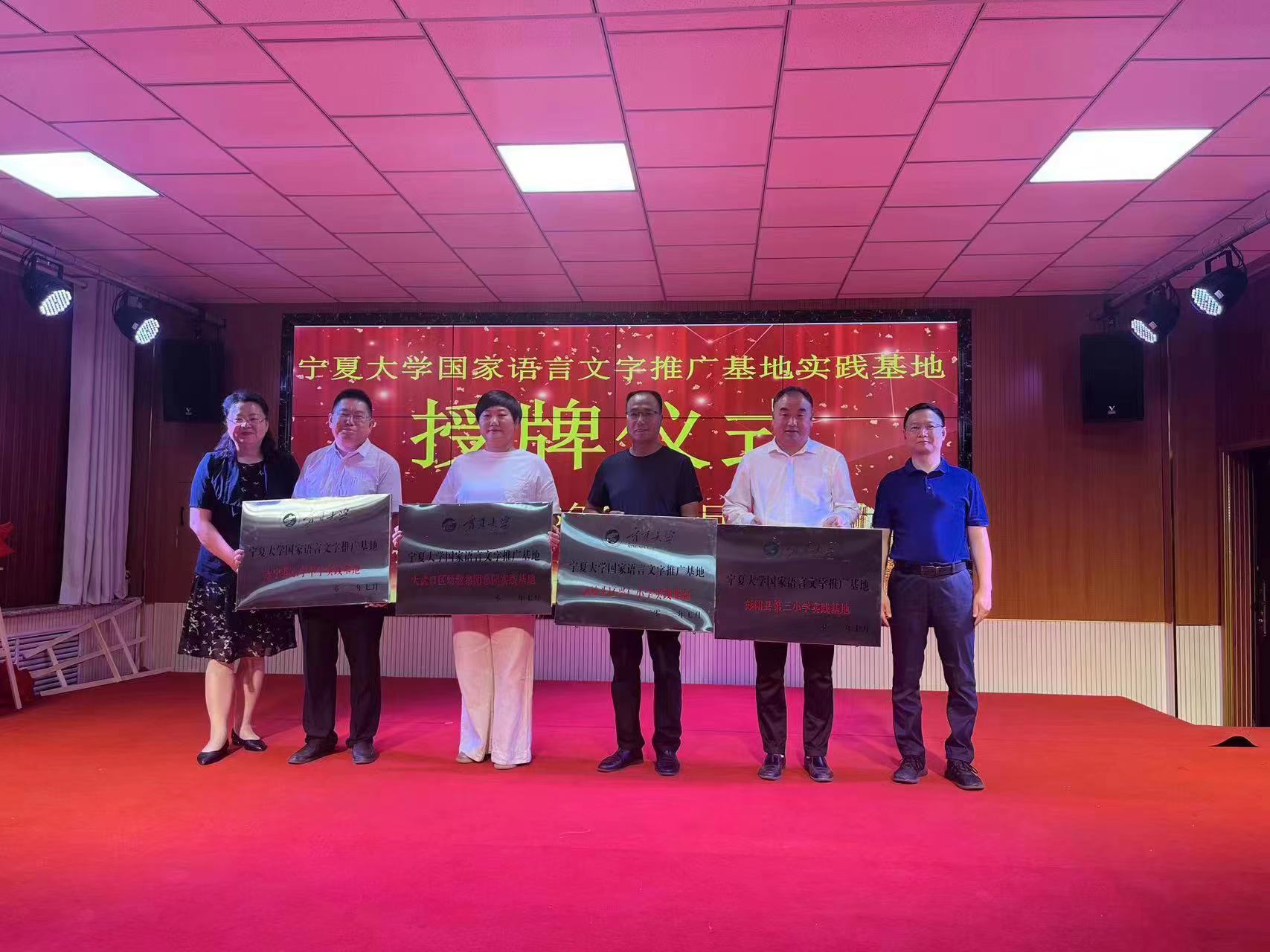 【beat365唯一官方网站新闻中心讯 本科生院】为更好贯彻落实国家语言文字工作精神,提升推广基地服务社会能力,示范引领地方国家通用语言文字工作,助力地方语言文化和教育事业建设发展,beat365唯一官方网站国家语言文字推广基地设立一批实践基地。7月21日上午,beat365唯一官方网站国家语言文字推广基地第一批实践基地授牌仪式在彭阳县第三小学举行。beat365唯一官方网站本科生院院长、国家语言文字推广基地主任张亚红,彭阳县委常委、副县长陈振能,彭阳县教体局副局长王...