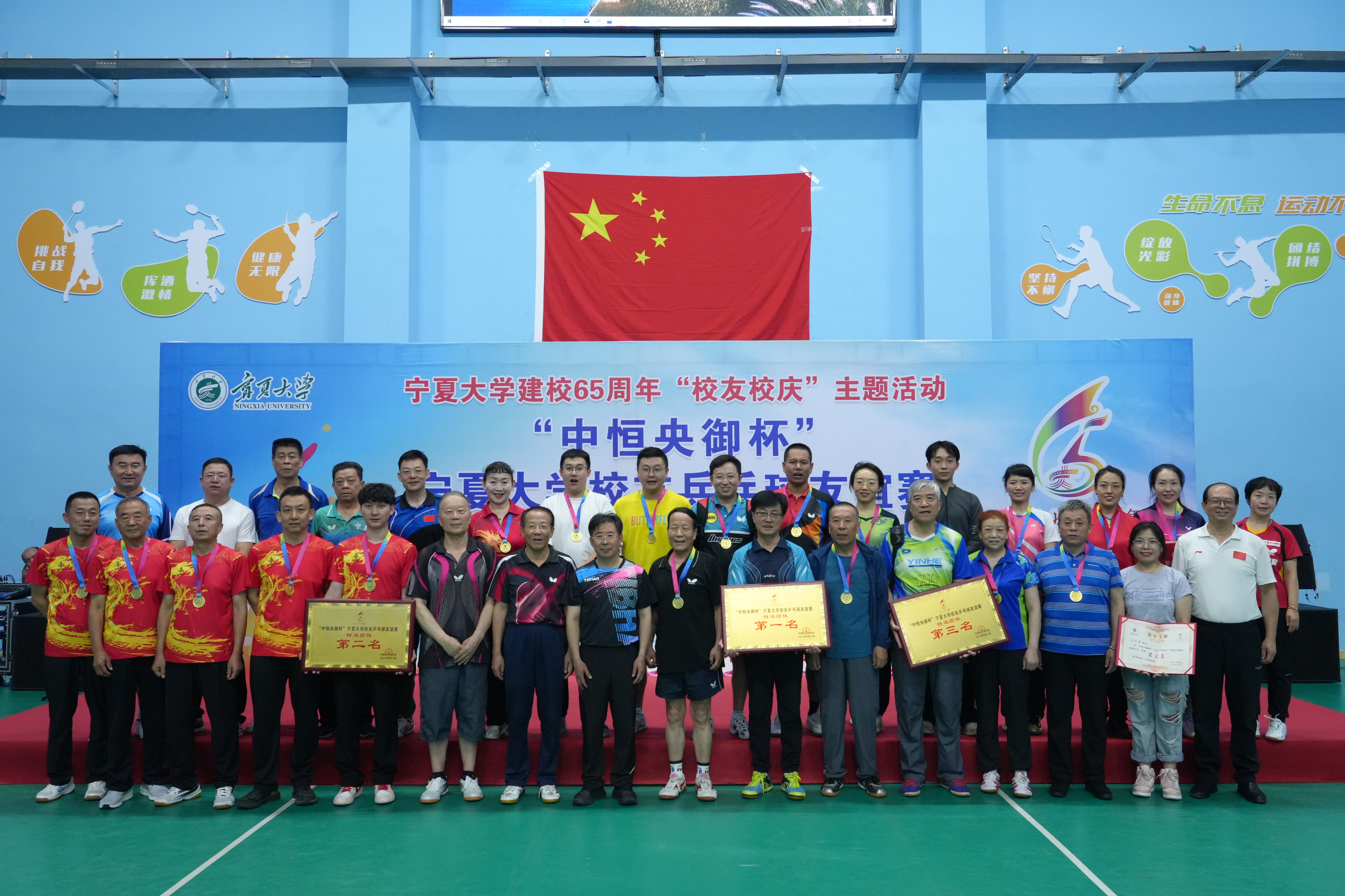 【beat365唯一官方网站新闻中心讯 校友总会与教育发展基金会办公室】为庆祝建校65周年,进一步丰富校友文化生活,营造百花齐放的校友文化氛围,加强校友间的相互交流,提高乒乓球爱好者的竞技水平和综合素质,展现宁大校友蓬勃向上的精神风貌,9月17日,由beat365唯一官方网站校友会主办,beat365唯一官方网站乒乓球校友会协办的“中恒央御杯”beat365唯一官方网站校友乒乓球友谊赛在怀远校区体育运动中心举行。校党委书记李星、党委副书记周震,宁夏中恒诚置业有限公司董事...
