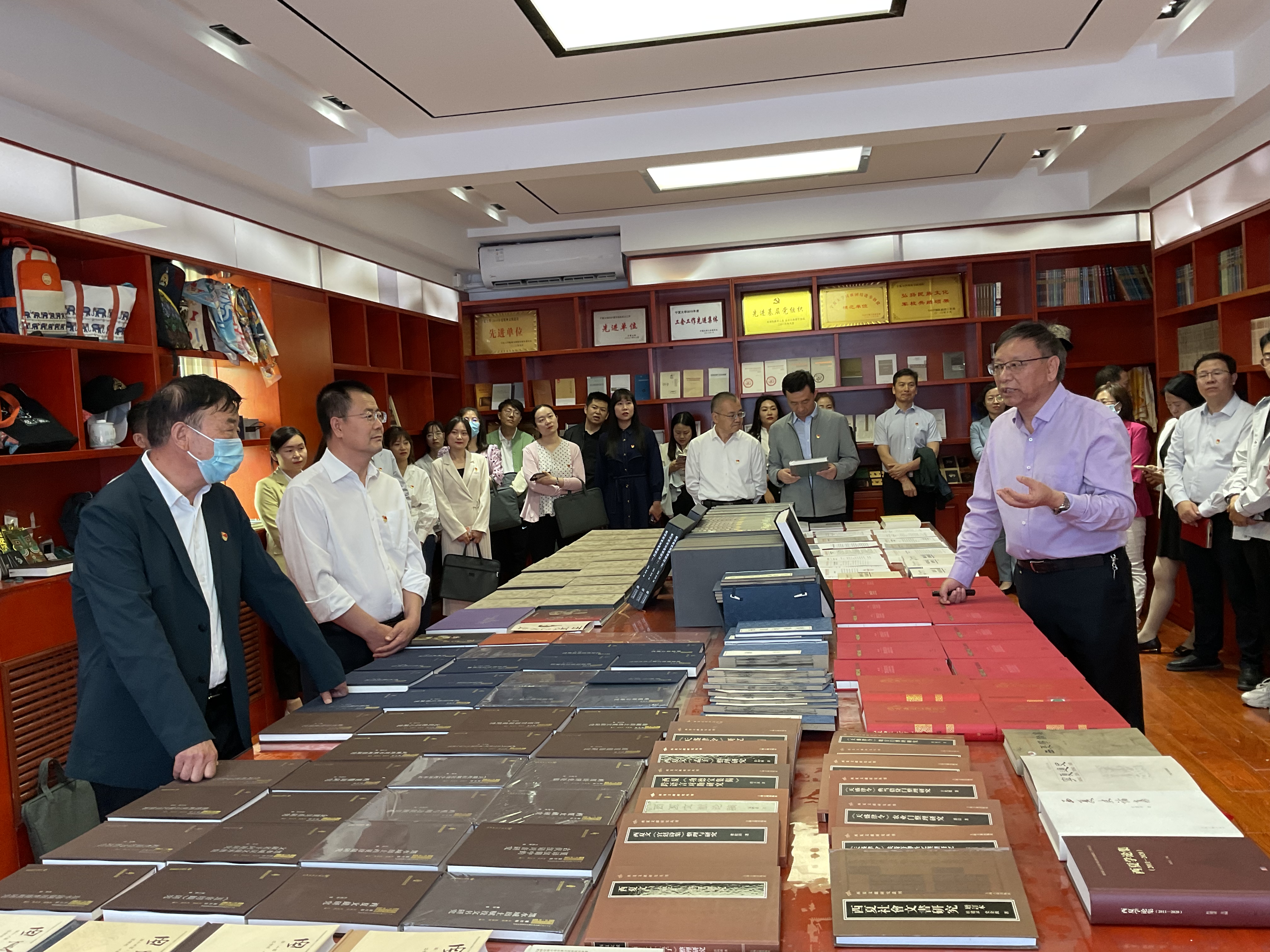【beat365唯一官方网站新闻中心讯 图书馆】9月20日上午,国家古籍保护中心办公室主任王红蕾、研究馆员庄秀芬在原图书馆馆长蔡永贵、自治区图书馆馆长陶爱兰、区古籍保护中心主任李海燕的陪同下到beat365官网图书馆指导工作,beat365唯一官方网站图书馆馆长苗福生及相关人员陪同参观。参观过程中,苗福生介绍了图书馆古文献特藏书库改造的相关情况以及图书馆古籍馆藏情况和保护现状。王红蕾分别考察了位于逸夫图书馆二楼的古籍保护展示中心、古籍修复工作室、...