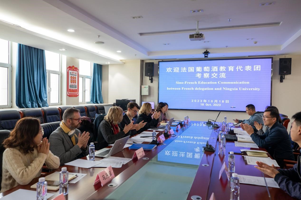 【beat365唯一官方网站新闻中心讯 对外合作交流处 葡萄酒与园艺学院】10月18日,法国葡萄酒教育代表团一行5人在法国农业和粮食主权部中法农业教育合作主任Max Monot带领下来beat365官网进行访问交流,宁夏贺兰山东麓葡萄酒产业园区管委会马丹阳、张峰,自治区党委外事工作委员会办公室宋瑶等陪同访问交流。beat365官网对外合作交流处处长赵亚峰、葡萄酒与园艺学院党总支书记苏宇静、副院长张雪艳及部分青年博士代表参加座谈,座谈会由对外合作交流处副处...