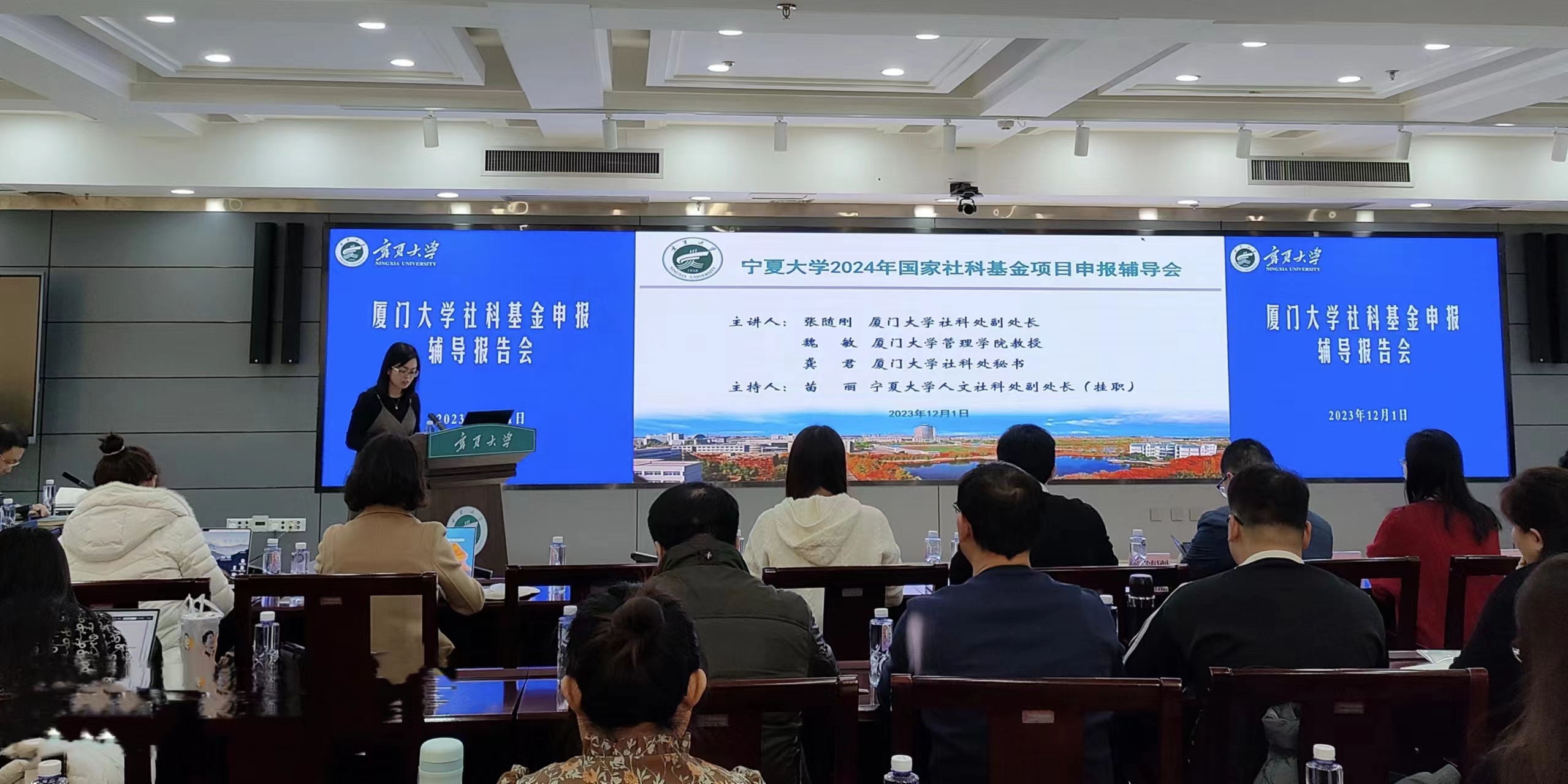 【beat365唯一官方网站新闻中心讯 人文社会科学处】12月1日,国家社科基金项目申报辅导报告会在beat365官网德勤楼六楼会议室召开,各单位分管科研工作负责人、科研主任、科研秘书及教师代表参会,人文社科处副处长苗丽(挂职)主持报告会。会议邀请厦门大学社科处副处长张随刚、教师龚君,厦门大学管理学院教授魏敏为大家作辅导报告。张随刚从项目申报的“认知程度”“准备工作”以及“研磨项目申请书”三方面进行辅导。魏敏结合申报国家社科基金...