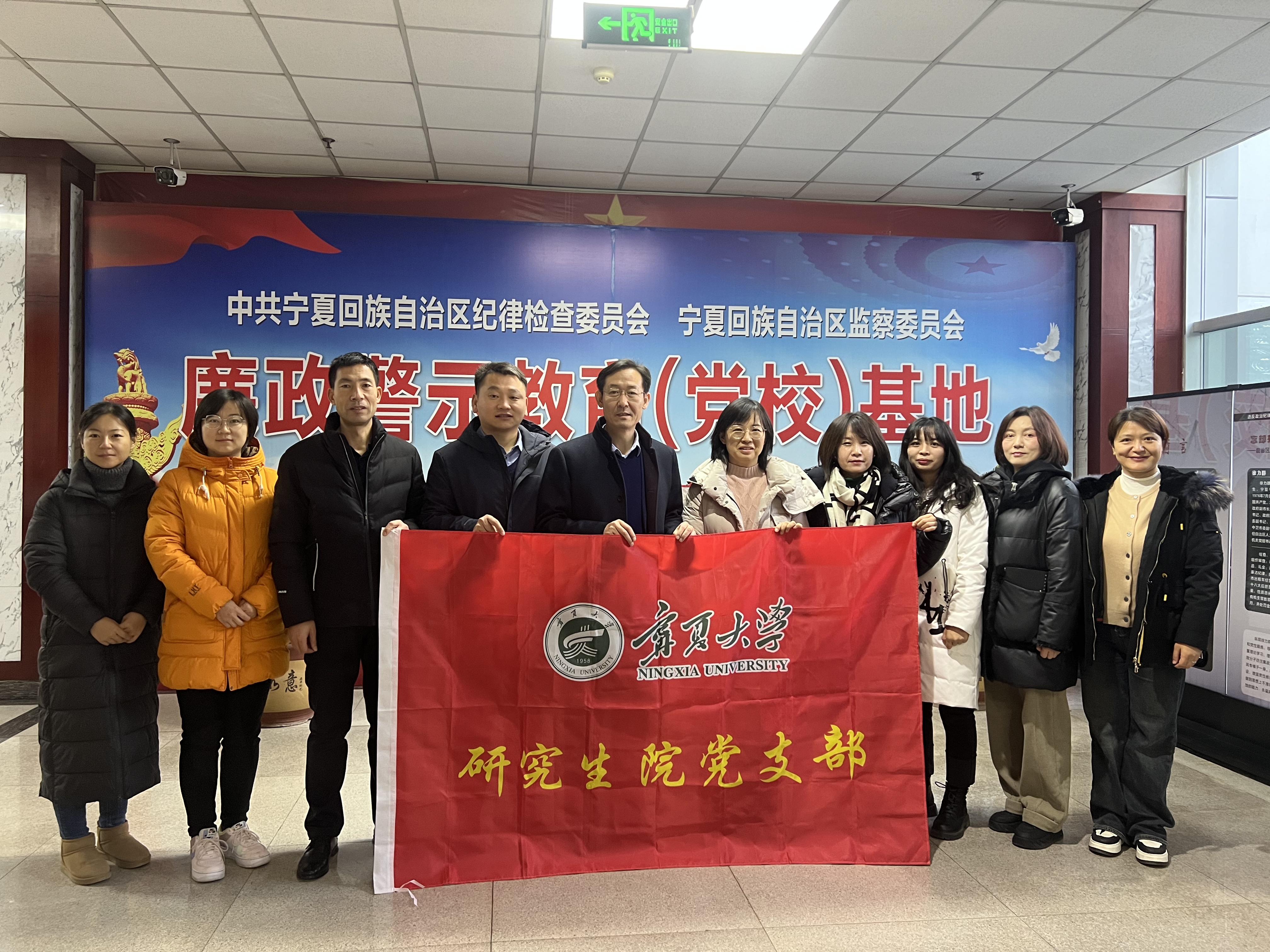【beat365唯一官方网站新闻中心讯 研究生院】为进一步加强党性教育和廉政建设,12月27日,研究生院党支部组织开展主题党日活动,全体党员和教职工前往中共宁夏区委党校进行参观学习。教职工先后参观了中共宁夏区委党校廉政警示教育(党校)基地和党性教育主题教室,认真聆听了中共宁夏区委党校科研处副处长宋晓明和党史党建教研部副主任杨春雪的讲解,观看了廉政教育的图文案例及宁夏地方党史资料,全体党员干部和教职工进一步加深了对廉政...