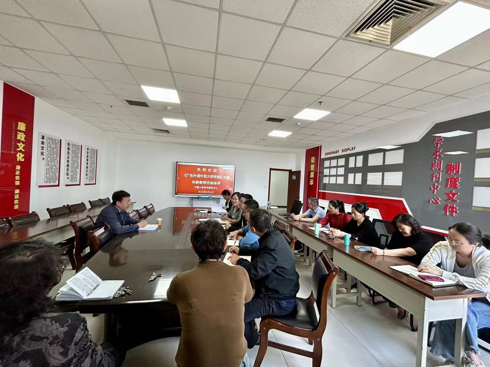 【beat365唯一官方网站新闻中心讯 学术期刊中心】为进一步学习先进办刊理念和经验,推动beat365唯一官方网站学术期刊高质量发展,5月6日,学术期刊中心特邀《广东外语外贸大学学报》主编孙毅教授就期刊建设工作进行指导与交流,马克思主义学院副院长钱容德、学术期刊中心全体人员参会。座谈会前,孙毅参观了学术期刊中心文化墙,详细了解了学术期刊中心文化理念和发展历程,了解了学校四种学术期刊的改革建设情况。座谈会上,孙毅结合《广东外语外贸大...