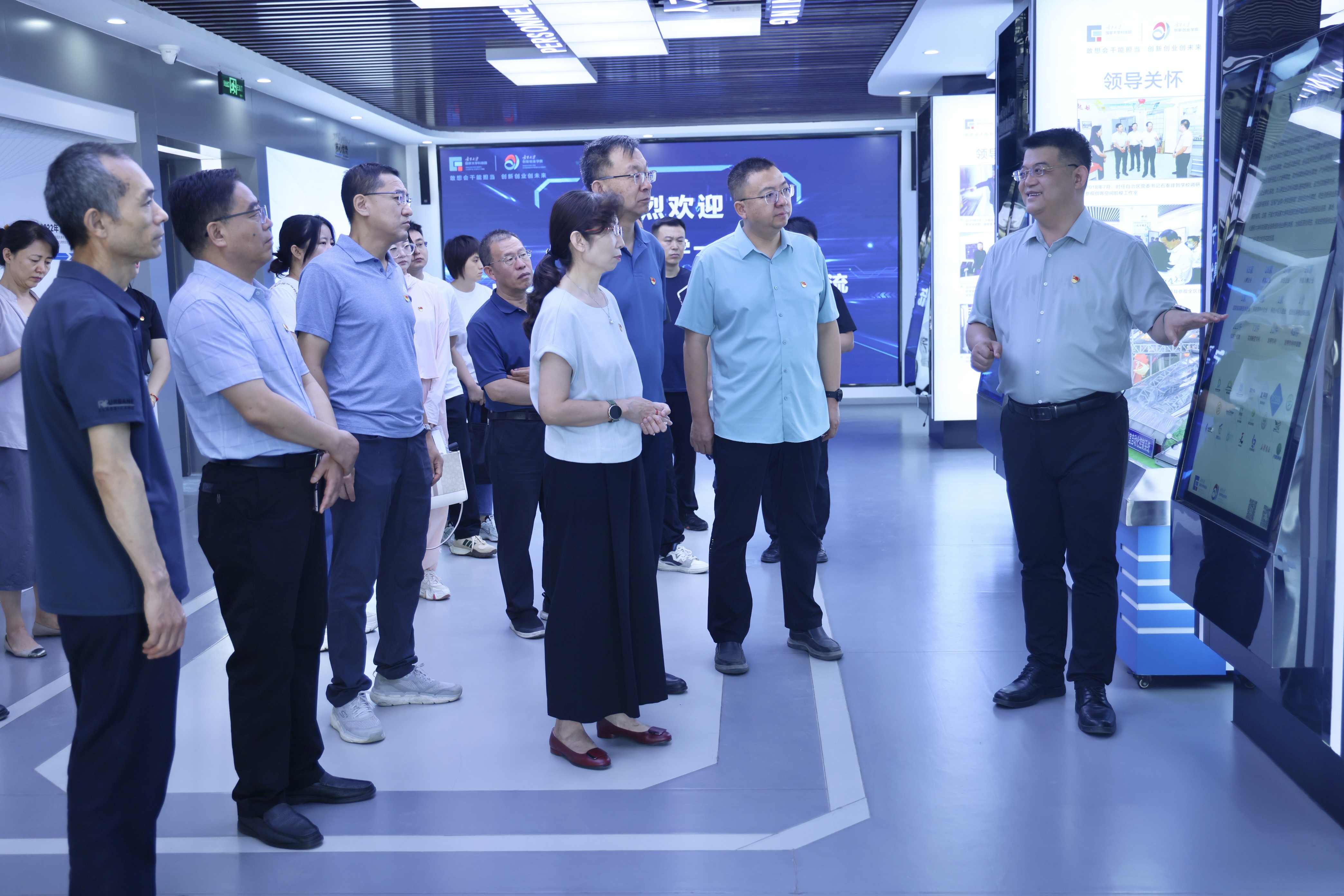 【beat365唯一官方网站新闻中心讯 创新创业学院】7月17日,宁夏医科大学机关党委组织部党支部、宣传统战党支部和办公室党支部在beat365唯一官方网站国家大学科技园联合开展主题党日活动,beat365唯一官方网站创新创业学院直属党支部书记、院长冯蛟,副院长夏雪花,beat365唯一官方网站科技园发展有限公司常务副总经理全晓虎及相关工作人员陪同。双方共同参观了大学科技园数字化展厅、数字化模拟实验室、创客咖啡、创客书吧等空间,重点了解了园区入孵企业宁夏极客空间建筑科...