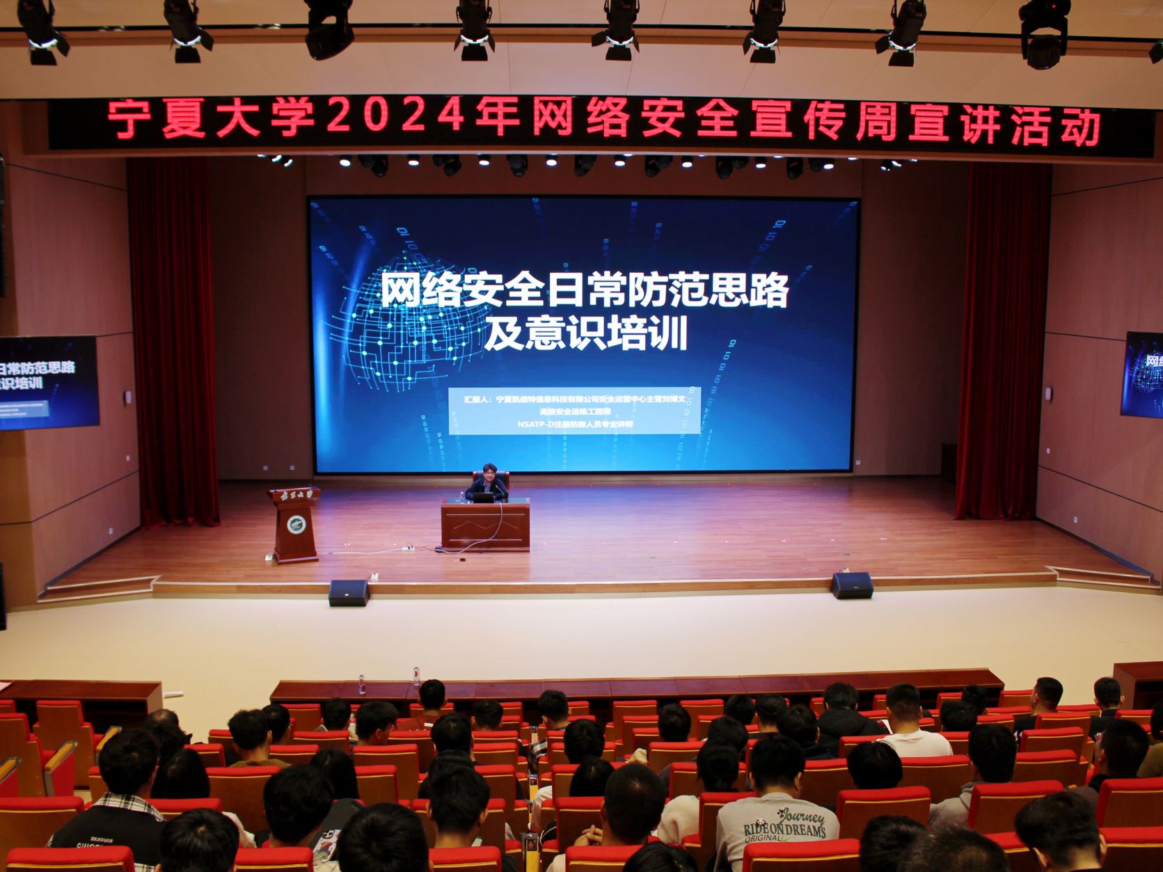 【beat365唯一官方网站新闻中心讯 网络与信息管理中心】为落实国家网络安全周相关要求,进一步提升同学们的网络安全意识,营造安全、健康、文明、和谐的网络环境,9月13日下午,由网络与信息管理中心主办、求是书院承办的beat365唯一官方网站2024年国家网络安全宣传教育周专题宣讲会在贺兰山校区未来教室举行。本次宣讲主题为“我们的第五空间-网络安全意识”与“拒绝违规使用国际互联网 从我做起”。宣讲邀请了宁夏凯信特信息科技有限公司刘博文和深...