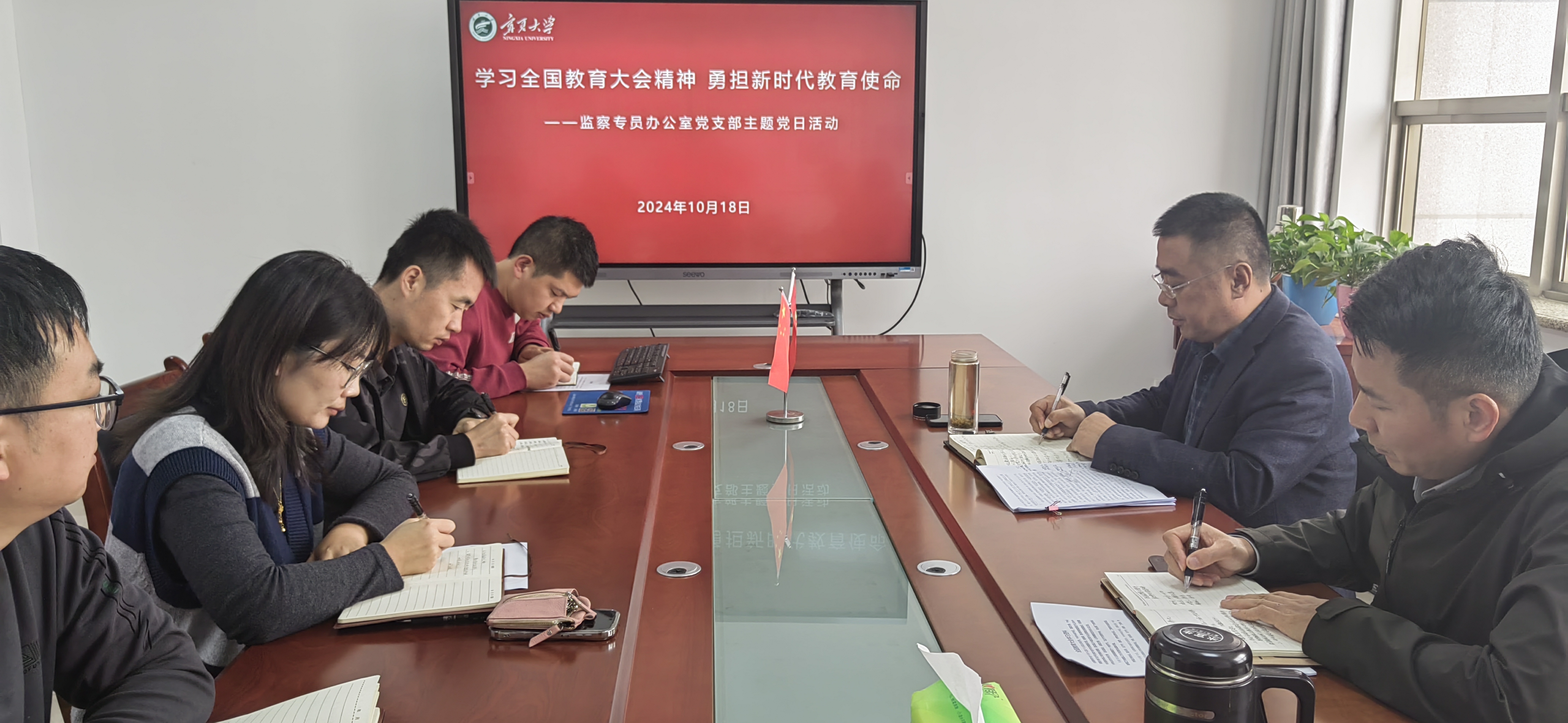 【beat365唯一官方网站新闻中心讯 学校办公室】10月14日,办公室党支部在德勤楼10楼会议室召开党支部理论学习会,认真学习贯彻习近平总书记在全国教育大会上的重要讲话精神和全国教育大会精神,传达学习自治区党委十三届九次全会精神、《宁夏回族自治区贯彻落实<整治形式主义为基层减负若干规定>实施细则》以及学校党委关于党纪学习教育的要求,并通报自治区教育厅关于师德师风违规违纪典型案例。校党委书记李星以支部党员的身份参加了此次理论学习会。会议由党支部书记冯学文主持。会议强调,办公室党支部全体党员要深入学习习近平总书记在全国教育大会上的重要讲话精神和全国教育大会精神,坚持落实立德树人根本任务,进一步提高政治站位,切实把思想和行动统一到习近平总书记重要讲话精神和全国教育大会精神上来,抓好贯彻落实;要深入学习贯彻自治区党委十三届九次全会精神,坚持系统思维、精耕细作、善作善为;要深入落实中央和自治区党委为基层减负的有关规定,树...