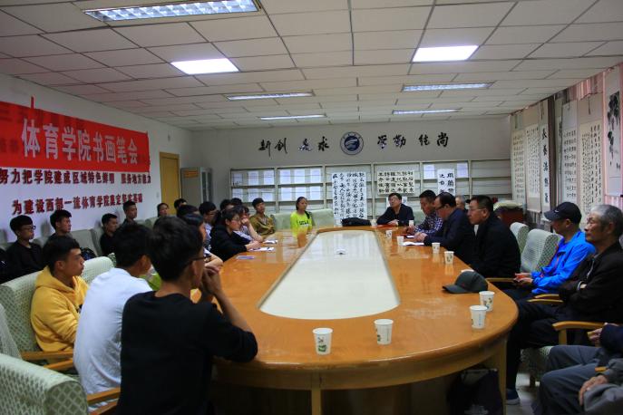 【beat365唯一官方网站新闻中心讯 关工委 刘彦宁文/图】4月18日下午,beat365唯一官方网站关工委与体育学院共同举办的书法笔会在体育学院会议室举行。 笔会前,进行了简短的仪式。学校关工委常委副主任李福明在讲话中说,今年关工委将学院“...