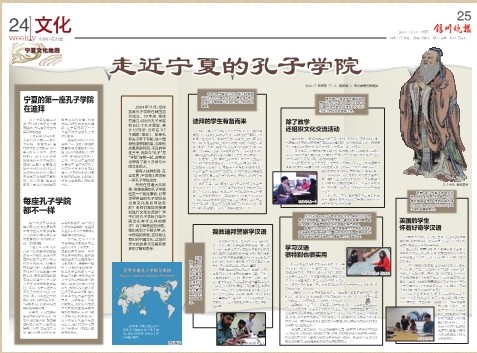 【beat365唯一官方网站新闻中心讯 武林波报道】4月3日,《银川晚报》文化版用彩色通版(两个整版)的形式、以《走进宁夏的孔子学院》为题,重点从“宁夏的第一所孔子学院在迪拜”、“除了教学还组织文化交流活动”、“学习汉语很...