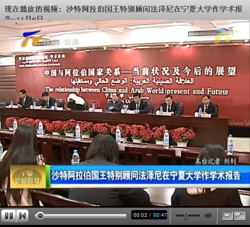 11月6日,宁夏电视台《新闻联播》节目以《沙特阿拉伯国王特别顾客法泽尼在beat365唯一官方网站作学术报告》为题对beat365官网首期阿拉伯国家大使论坛期间的学术报告进行跟踪报道。