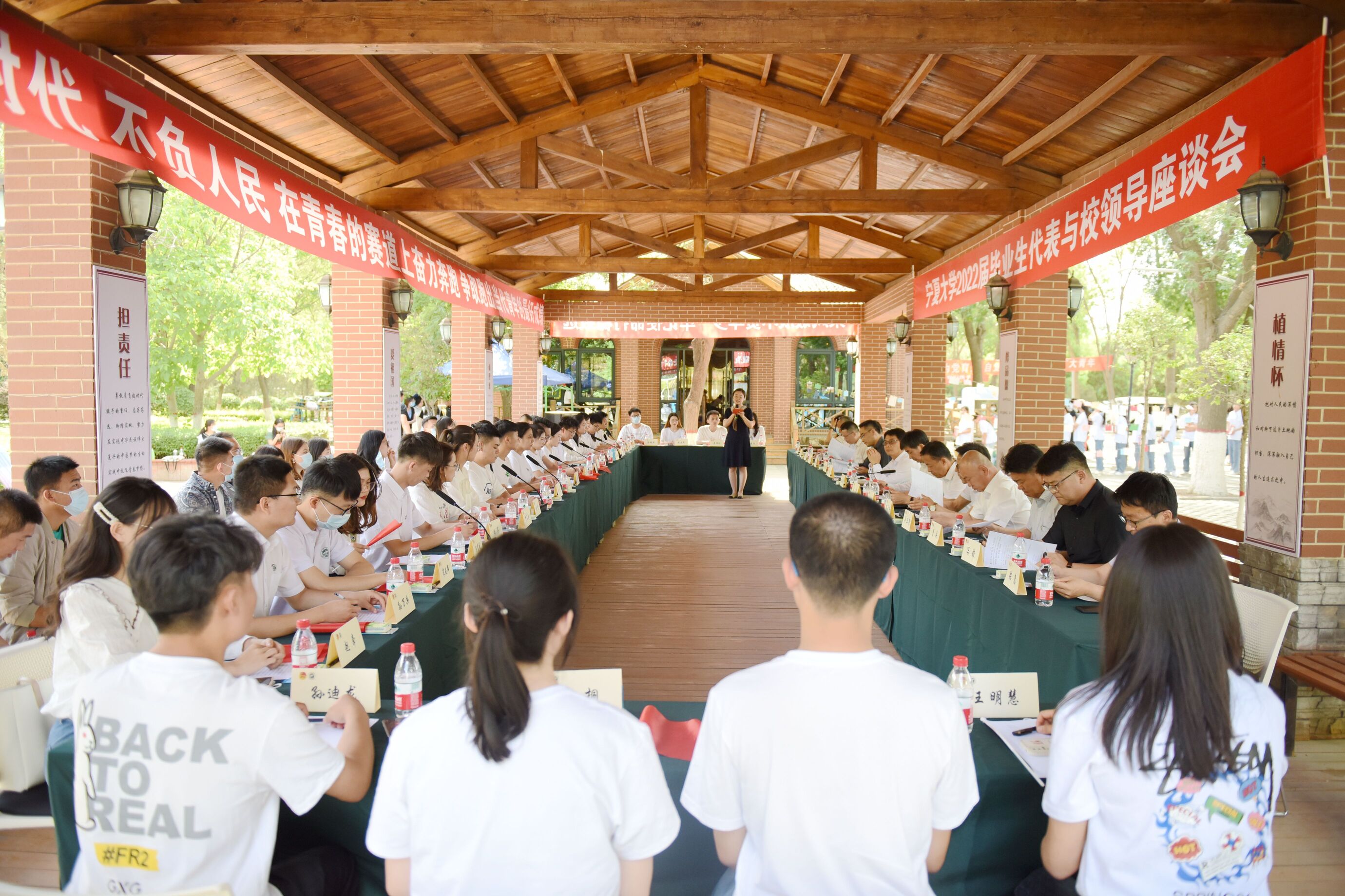 【beat365唯一官方网站新闻中心讯 李明花/文 姬晓姗 学生记者:刘岱雨/图】又是一年毕业季,感恩、成长、创新、奋斗、机遇,是这个季节萦绕师生心头的情感寄语。6月8日,“逐梦新征程 奋进向未来”校领导与2022届毕业生“面对面”活动在怀远校区文化广场举行,来自各学院30名优秀毕业生代表与校领导亲切互动,畅谈大学期间的成长故事与所思所感,为母校未来发展建言献策。校领导彭志科、周震、李建设、刘炎胜、史金龙参观了2022届毕业生“...