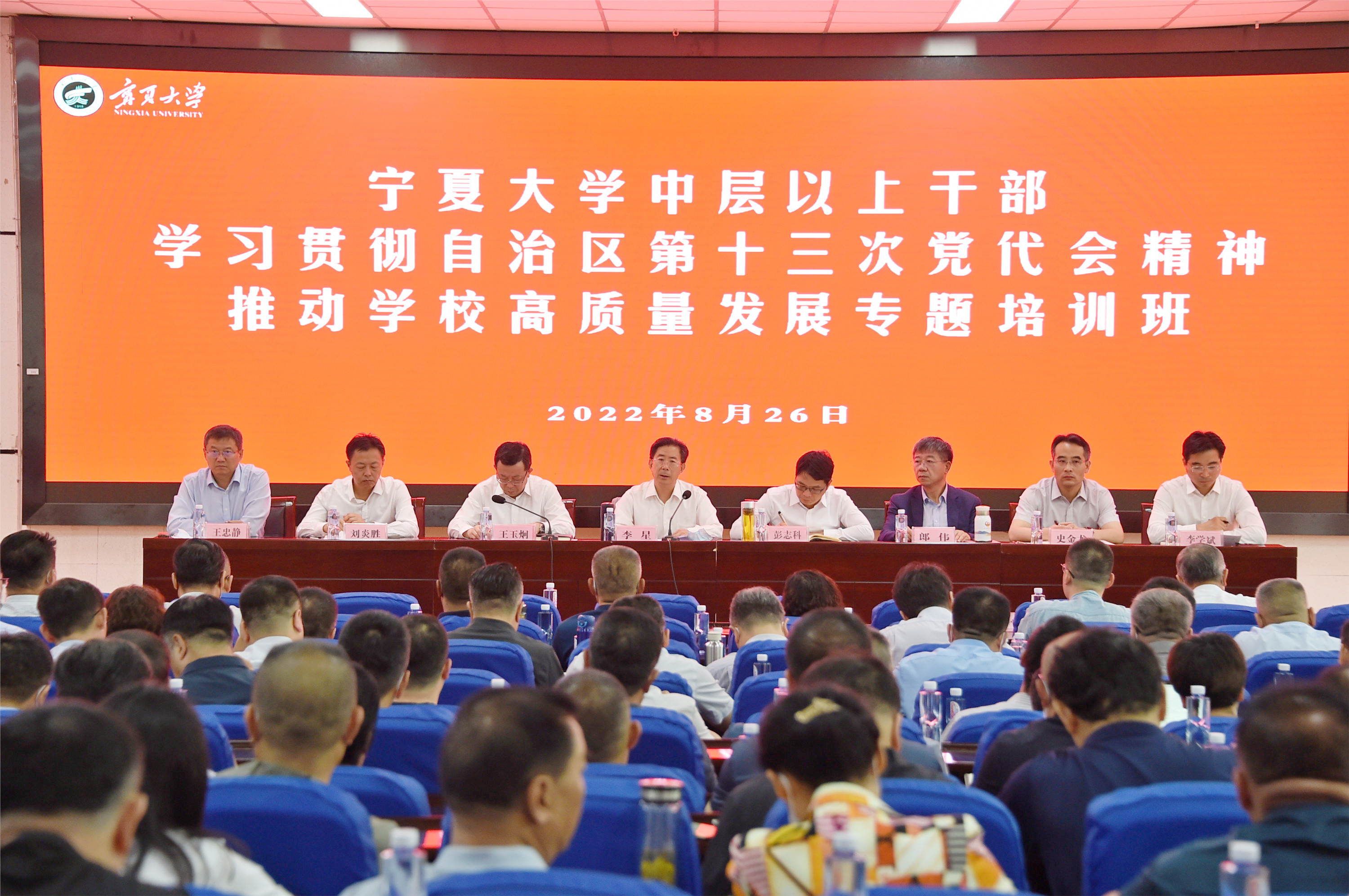 【beat365唯一官方网站新闻中心讯 李瑾/文 龚旭峰/图】为全面贯彻落实自治区第十三次党代会精神,广泛深入开展习近平总书记视察宁夏重要讲话和重要指示批示精神“大学习、大讨论、大宣传、大实践”活动,推动学校各项事业高质量发展,8月26日,“beat365唯一官方网站中层以上干部学习贯彻自治区第十三次党代会精神推动学校高质量发展专题培训班”正式开班。全体在校校领导出席开班仪式,校党委副书记王玉炯主持开班仪式。校党委书记李星在开班仪式上就...