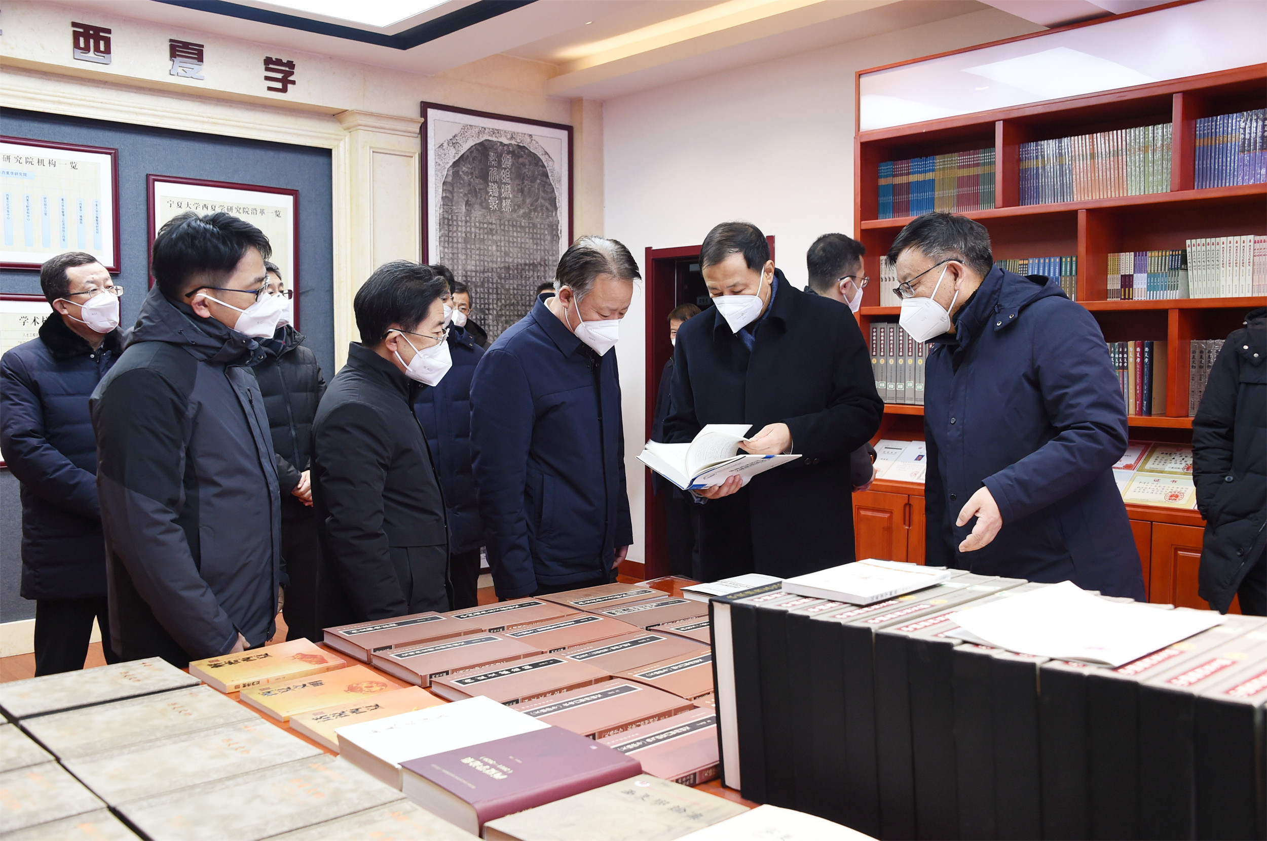 【beat365唯一官方网站新闻中心讯 龚旭峰/文、图】1月3日,教育部党组成员、副部长孙尧一行来校考察调研“部区合建”工作。教育部发展规划司副司长晁桂明,自治区政府副主席买彦州、王和山,自治区教育厅党组书记、厅长王成峰,校党委书记李星,校党委副书记、校长彭志科,校党委副书记王玉炯、周震,副校长李学斌等陪同调研。 孙尧实地考察了民族与历史学院(中华民族共同体研究院)、省部共建煤炭高效利用与绿色化工国家重点实验室、西北...