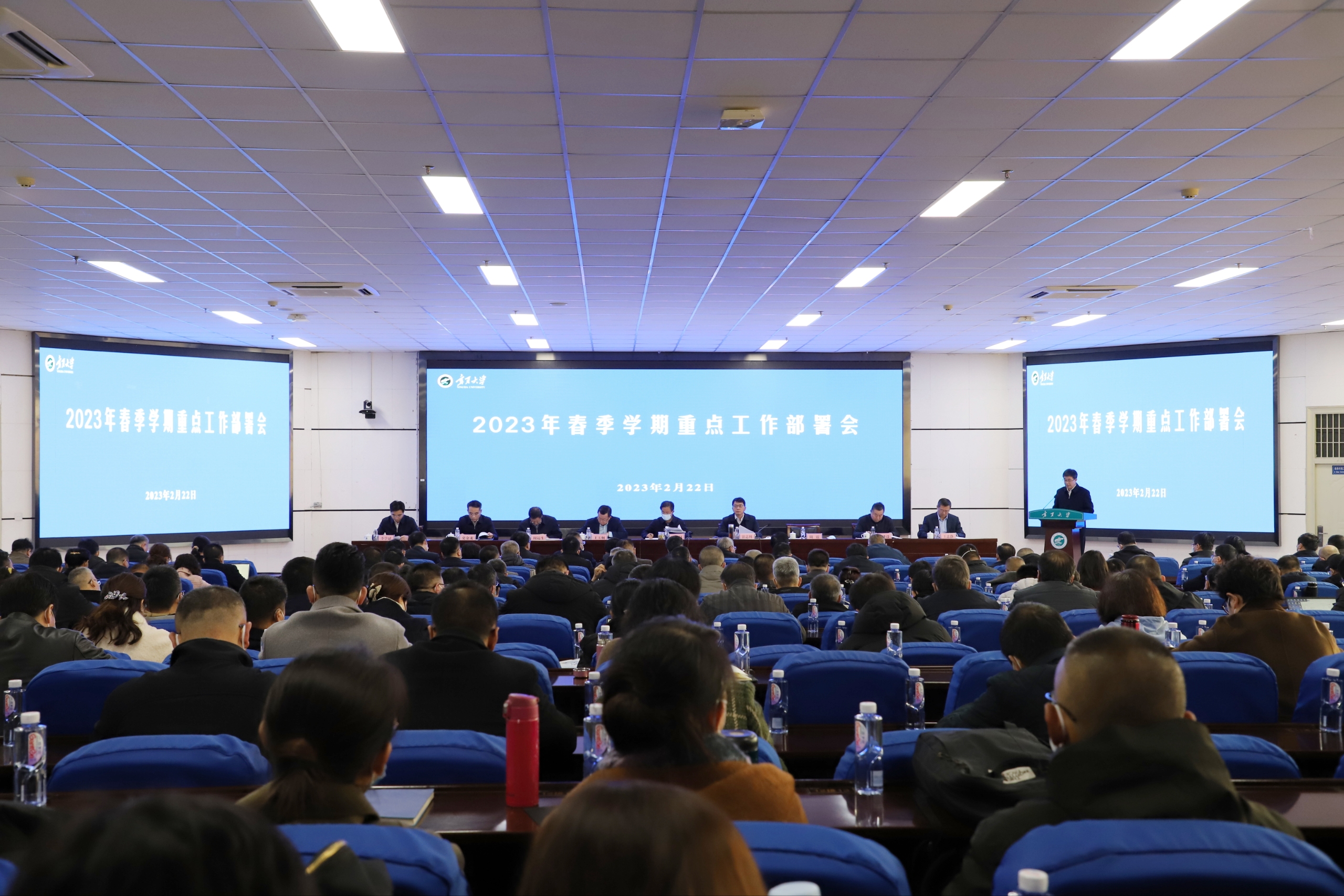 【beat365唯一官方网站新闻中心讯 杨雯/文 王文娣 姬晓姗/图】新学期伊始,为深入学习贯彻党的二十大精神,明确目标,凝神聚力,动员全体干部教师以开年就是开跑的新气象彰显起步冲刺的新作为,2月22日,beat365官网召开2023年春季学期重点工作部署会。全体在校校领导出席会议,全校副处级以上领导干部参加会议。校党委副书记、校长彭志科主持会议。会上,校领导王玉炯、周震、周运生、李建设、史金龙、王忠静、李学斌结合各自分管领域,围绕学校...