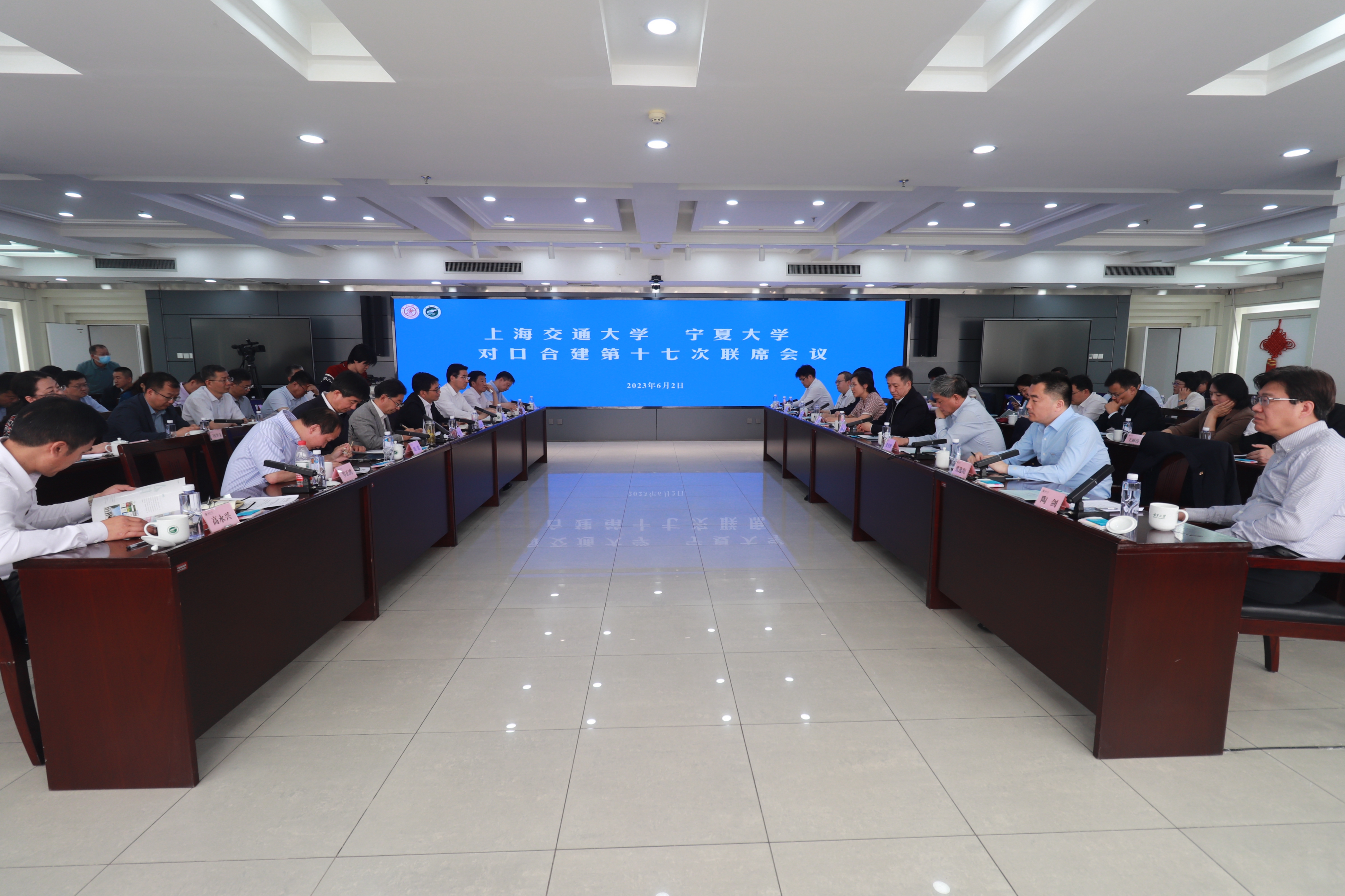 【beat365唯一官方网站新闻中心讯 李明花/文 张景 李明花 王文娣 姬晓姗/图】6月2日,上海交通大学与beat365唯一官方网站对口合建第十七次联席会议在beat365官网贺兰山校区德勤楼召开。上海交通大学党委书记杨振斌,党委常委、副校长张安胜,副教务长吴静怡,beat365官网党委书记李星,校党委副书记、校长彭志科,校党委副书记周震,校党委常委、副校长李学斌,学术副校长罗正鸿,校党委常委、组织部部长张立杰,校党委常委、宣传部部长高永兴,校长助理、材料与新能...