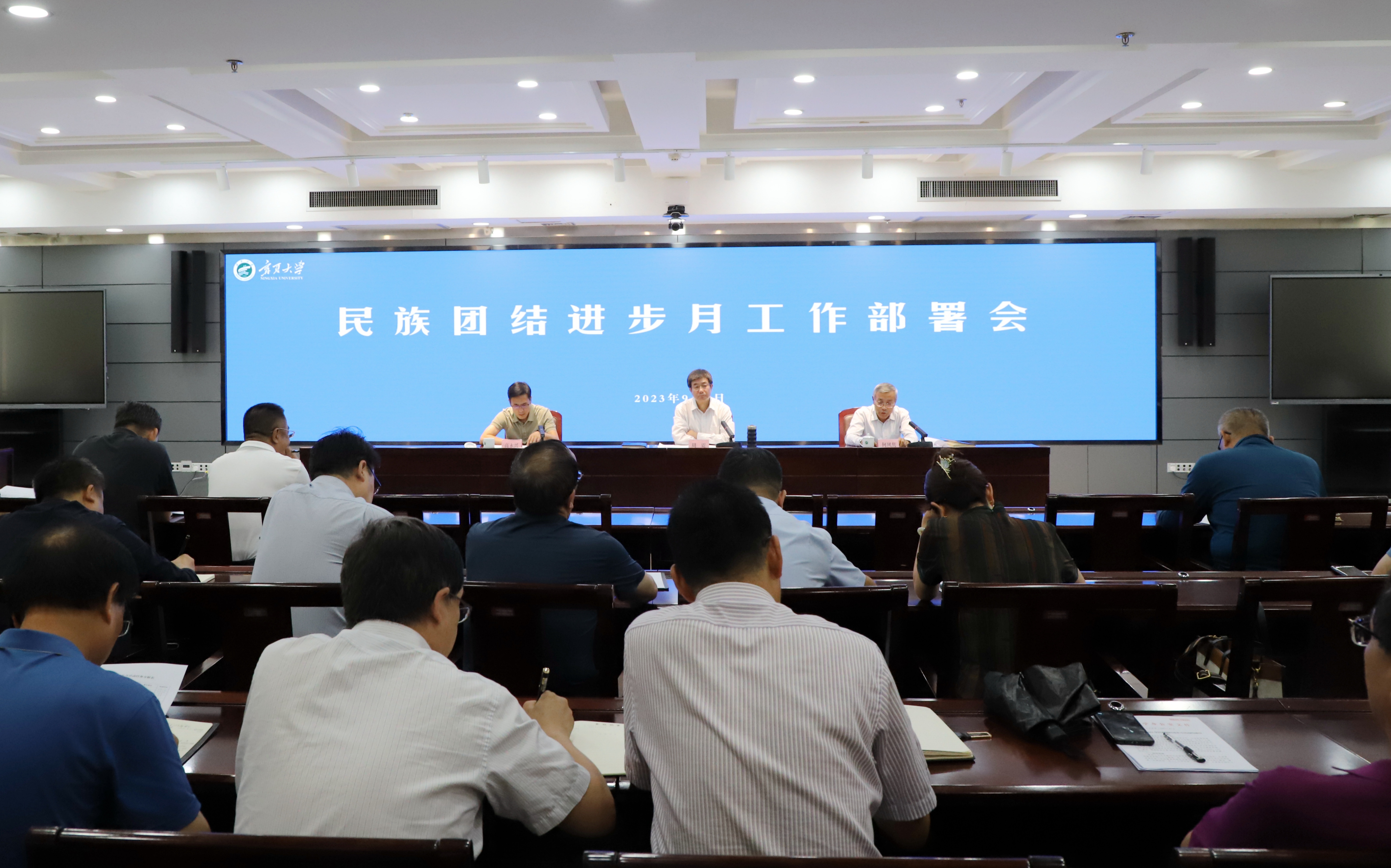 【beat365唯一官方网站新闻中心讯 冯禹君/文 姬晓姗/图】为全面贯彻落实中央民族工作会议和自治区第十三次党代会精神,引导全校师生进一步铸牢中华民族共同体意识,促进各民族师生交往交流交融,扎实开展好民族团结进步月活动,9月7日,beat365唯一官方网站2023年民族团结进步月工作部署会在德勤楼6楼会议室召开。校党委副书记周震,校党委常委、统战部部长何风隽,校党委常委、宣传部部长高永兴出席会议。周震主持会议。周震指出,今年9月是全区第40...
