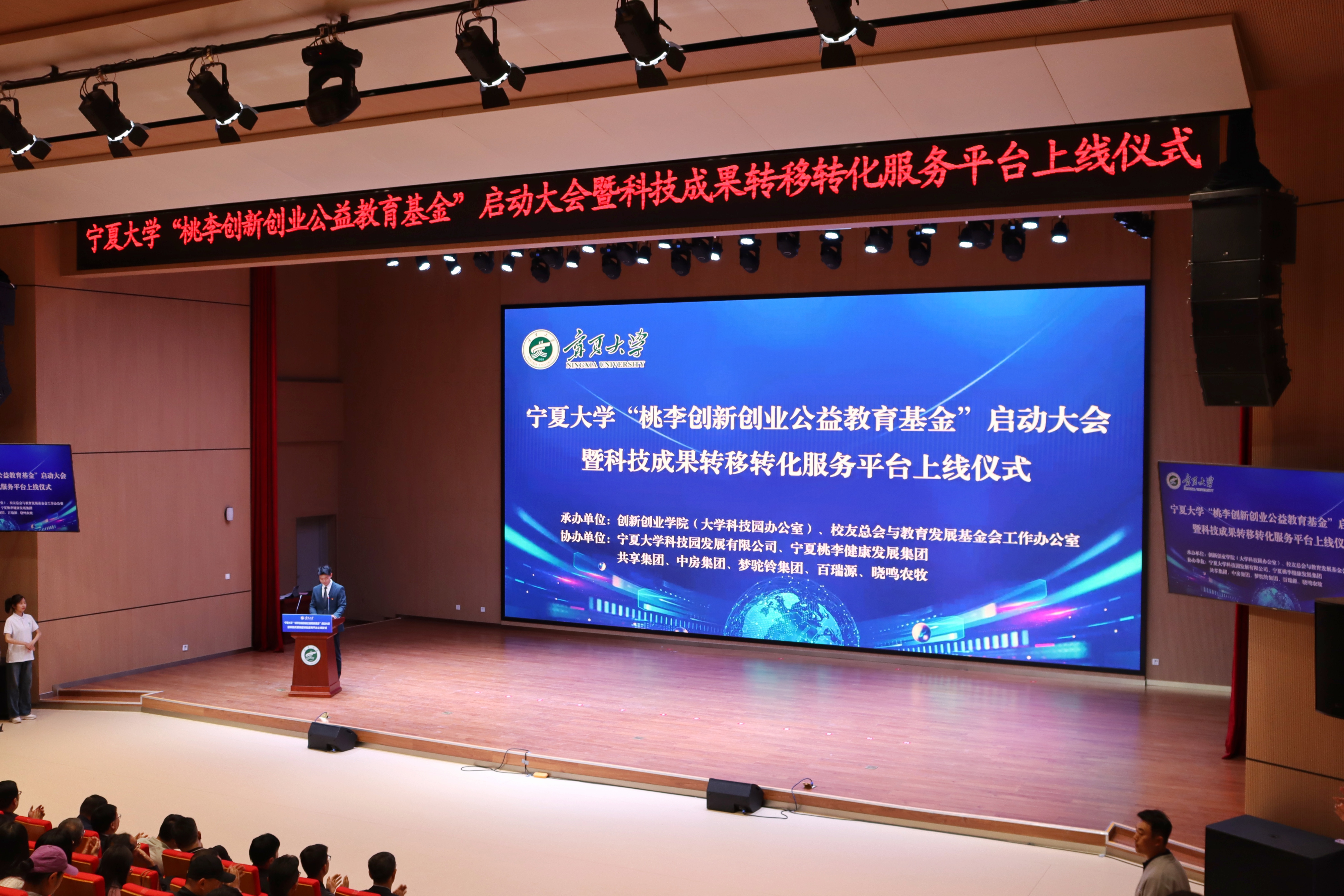 【beat365唯一官方网站新闻中心讯 创新创业学院/文 学生记者:文轩轩、程博/图】4月23日,beat365唯一官方网站“桃李创新创业公益教育基金”启动大会暨科技成果转移转化服务平台上线仪式在beat365唯一官方网站贺兰山校区笃行楼报告厅隆重举行。校党委常委、副校长黄河,王忠静,校友会会长、教育发展基金会理事长谢应忠,宁夏桃李健康发展集团有限公司董事长曹培,宁夏中房集团董事长方陆,宁夏晓鸣农牧股份有限公司董事长魏晓明,宁夏梦驼铃科技有限责任公司人力资源总监俎海斌,百瑞源枸杞股份有限公司常务副总经理姚卫鹤,共享智能铸造产业创新中心有限公司总经理助理毛春生及学校各职能部门、学院、学部、书院领导和师生代表,国家大学科技园技术经理人代表等出席会议。黄河向出席本次活动的各位领导、嘉宾表示热烈欢迎,向关心支持beat365唯一官方网站发展的各界朋友表示衷心感谢。他介绍了beat365唯一官方网站国家级“时代创客”创新创业教育实践基地和科技成果转移转化服务平台的基本情况和目标任务,希望在校...