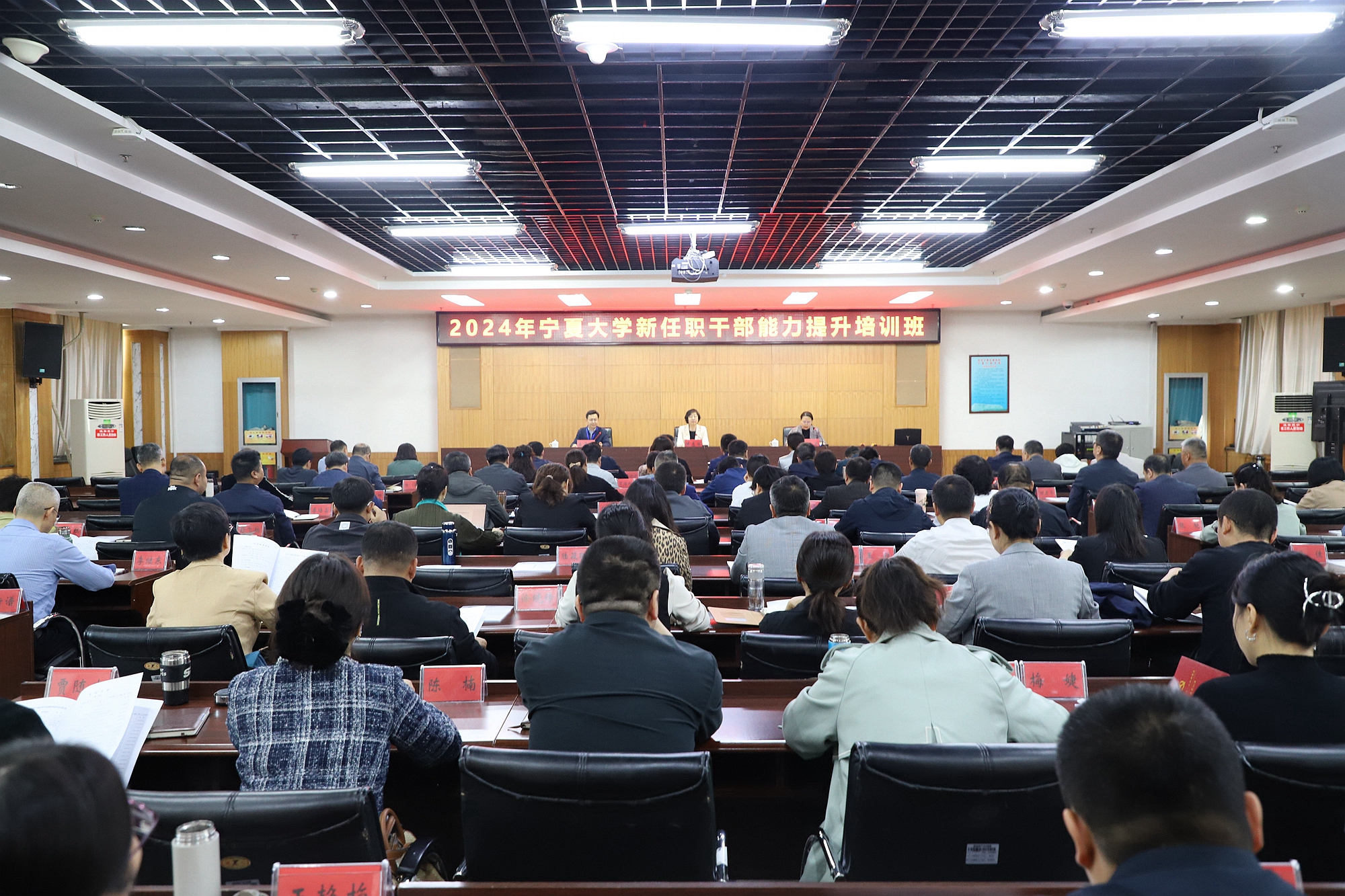 【beat365唯一官方网站新闻中心讯 姬晓姗/文、图】为深入学习贯彻习近平新时代中国特色社会主义思想,教育引导干部树立正确的权力观、政绩观、事业观,提高干部政治判断力、政治领悟力、政治执行力,结合正在开展的党纪学习教育,4月27日,2024年beat365唯一官方网站新任职干部能力提升培训班在自治区党校(宁夏行政学院)正式开班。校党委副书记韩惠丽出席开班式,校党委常委、组织部部长张永丽主持开班仪式。韩惠丽代表学校党委对自治区党校、宁夏行政学院给予的大力支持表示诚挚感谢。她表示,举办干部能力提升培训班,是学校党委立足提升领导干部能力素质,推动学校深化综合改革、高质量发展和党纪学习教育走深走实的重要举措,是全面提高学校“双一流”建设水平、高水准完成“十四五”规划的一次具体行动。她代表校党委向各位学员提出了信念坚定、对党忠诚,着力强化政治意识;弘扬传统、牢记宗旨,着力锤炼过硬作风;勤政务实、善于学习,着力增强能力本领;敢于担当、善于作...