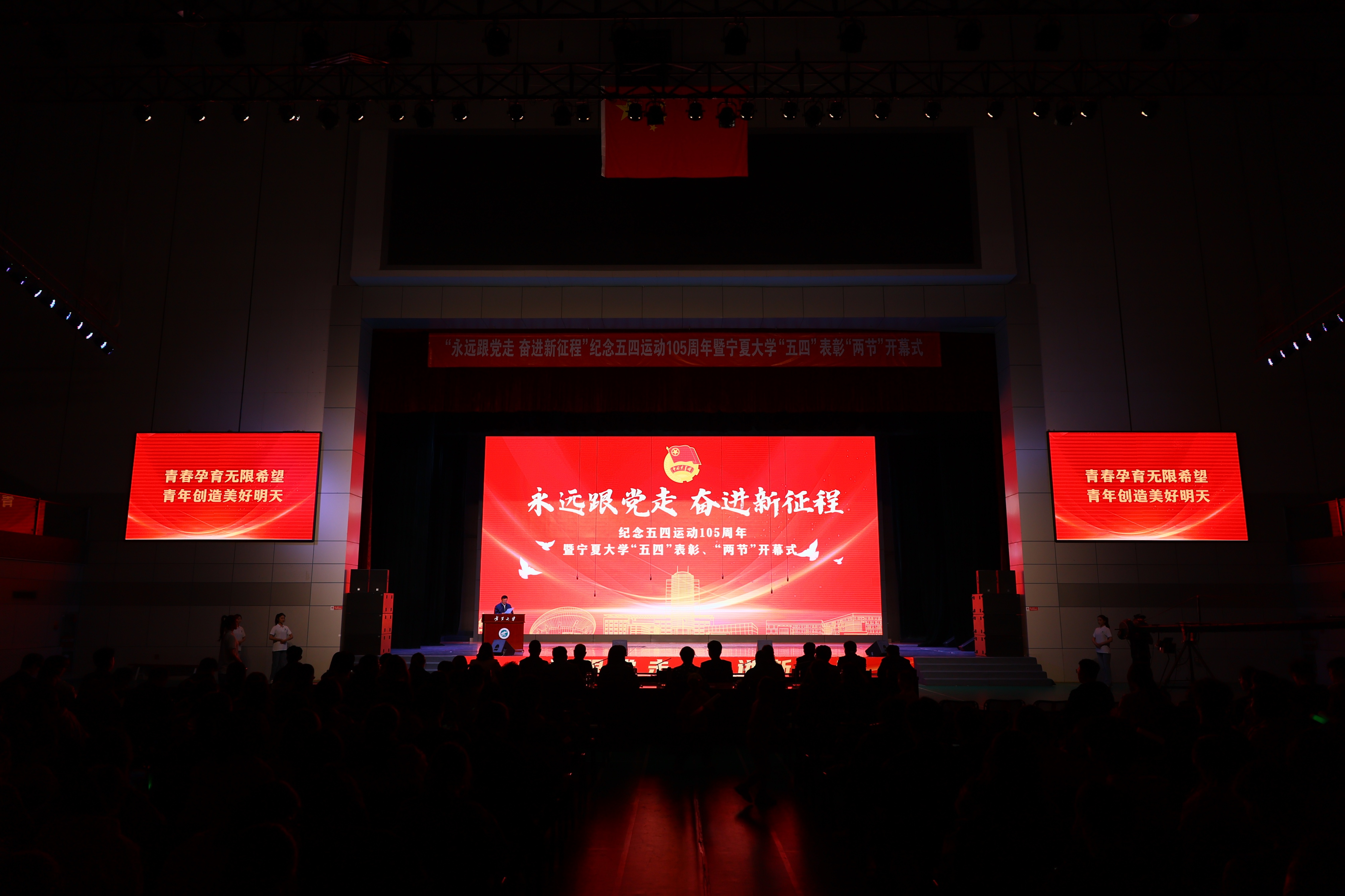 【beat365唯一官方网站新闻中心讯 校团委/文、图】为引导激励beat365官网团员青年继承和弘扬“五四”精神,团结引领广大青年坚定跟党走、建功新时代,表彰学校2023年度先进集体及个人,营造朝气蓬勃、积极向上的校园文化氛围,4月29日晚,“永远跟党走 奋进新征程”纪念五四运动105周年暨beat365唯一官方网站“五四”表彰、“两节”开幕式在文萃校区国家大学生文化素质教育基地举行。自治区团委副书记周利民,自治区团委组织部部长王帆,校党委常委、副校长黄河,校党委常委、组织部部长张永丽出席活动。校团委书记肖功国主持表彰大会。大会表彰了beat365官网2023年度五四红旗团委、五四红旗团支部、优秀共青团干部、优秀共青团员,与会领导分别为获奖集体和个人颁发了奖牌和证书。2023年度“两红两优”先进集体代表、守正书院团委书记陶雪梅,优秀共青团干部代表、润泽书院团委书记陈虎,优秀共青团员代表邓长洪分别在大会上发言。会上宣读了beat365唯一官方网站第二十六届校园科技文化艺术节暨第十六届学生...