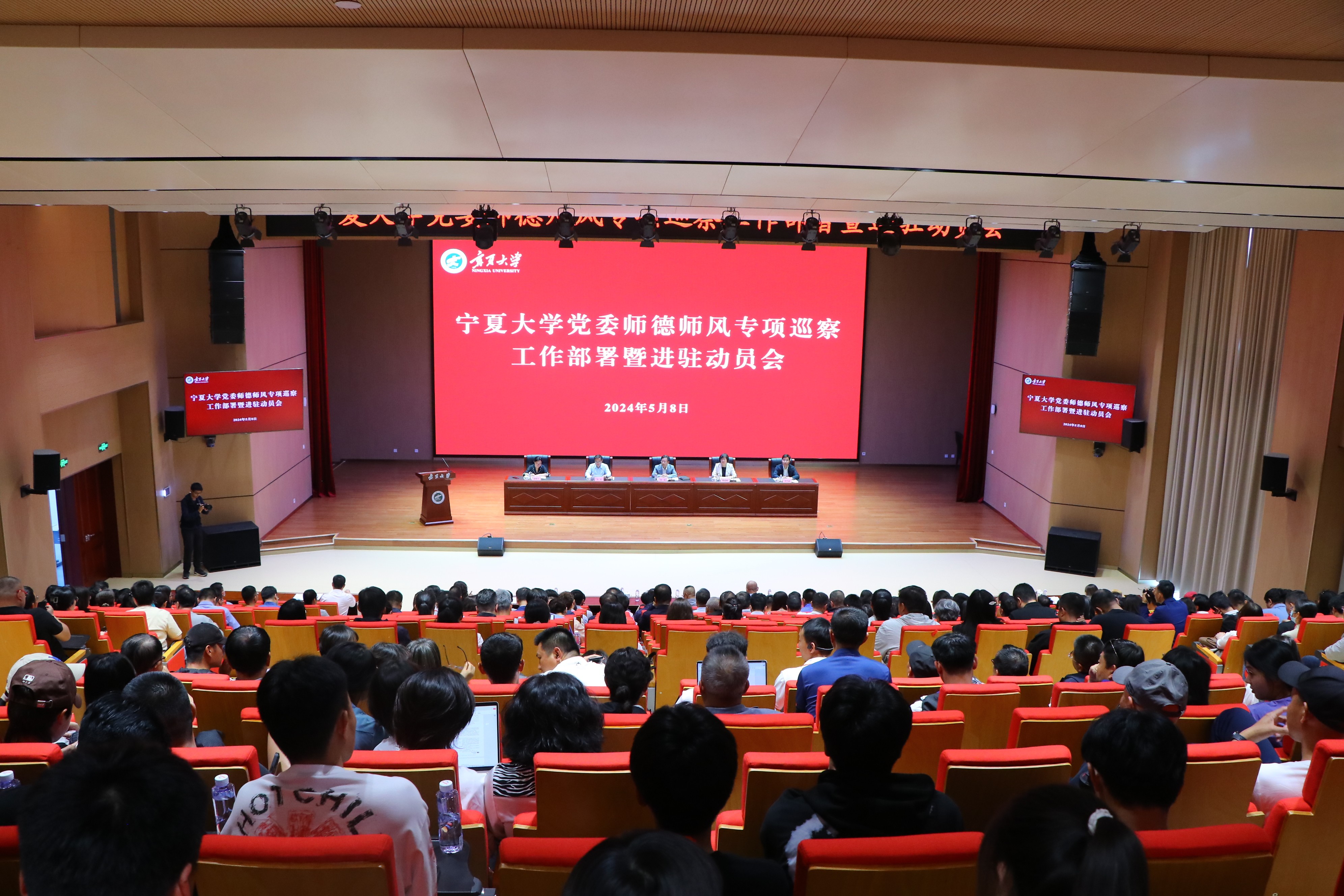 【beat365唯一官方网站新闻中心讯 杨雯/文 杨雯 学生记者 王敬文/图】为进一步统一思想,提高认识,安排部署师德师风专项巡察工作,推动全面从严治党向纵深发展,5月8日,beat365官网在笃行楼一楼报告厅召开师德师风专项巡察工作部署暨进驻动员会。校党委书记、党委巡察工作领导小组组长李星,党委副书记、党委巡察工作领导小组副组长韩惠丽,校党委常委、副校长李学斌,副校长赵晓佳出席会议,校党委常委、纪委书记、党委巡察工作领导小组副组长马元主持会议。会上,韩惠丽宣布了巡察组组长、副组长授权任职及任务分工的决定;巡察(督查)办公室主任井惠敏宣读《中共beat365唯一官方网站委员会师德师风专项巡察工作方案》;巡察组组长党小龙,农学院党总支书记葛志军,尚德书院党委书记、院长潘瑞分别代表巡察组和被巡察单位党组织作了表态发言。“加强师德师风建设,是推动教育事业健康发展的必然要求,是落实立德树人根本任务的重要保障……”李星指出,学校党委高度重视师德师风建设...
