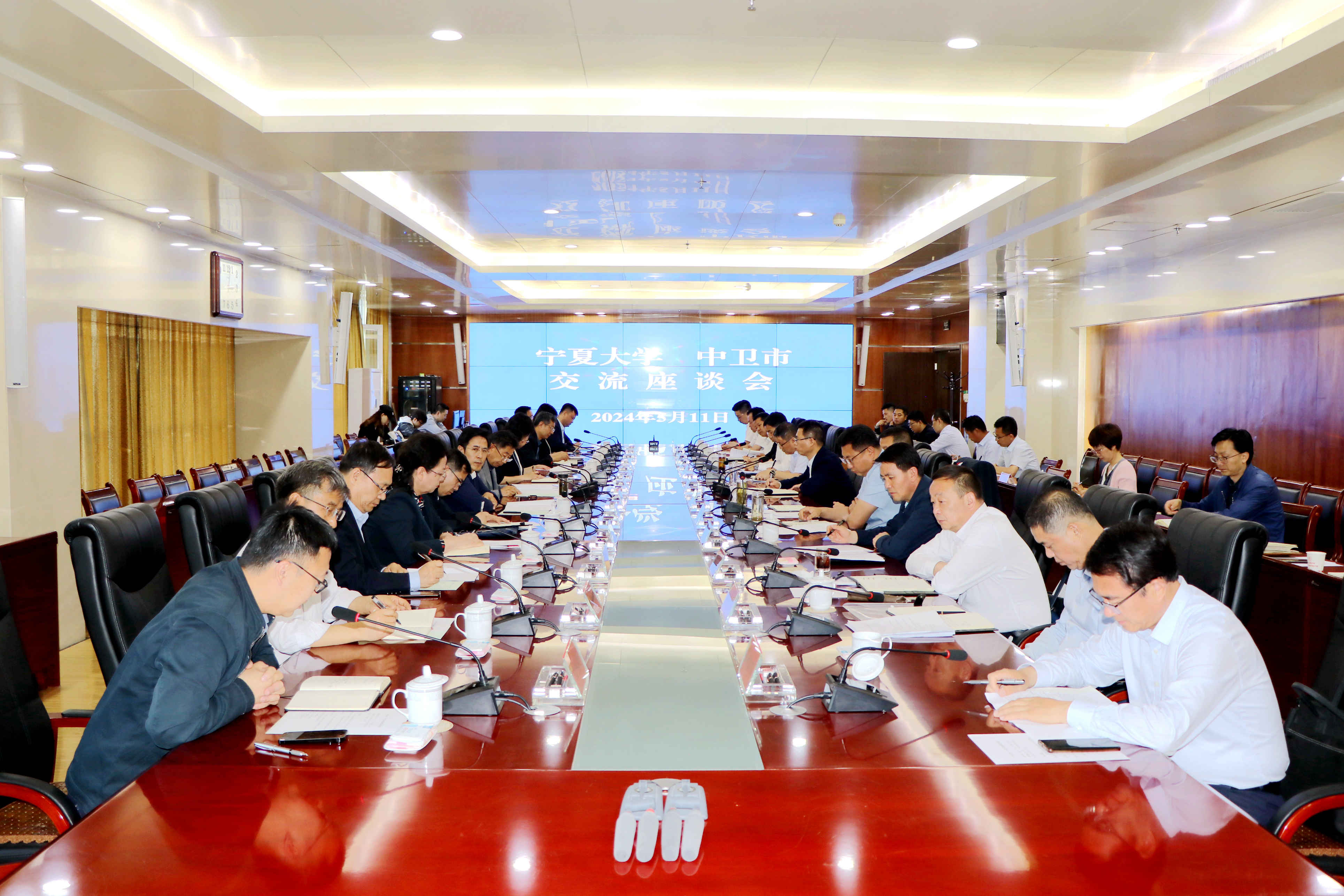 【beat365唯一官方网站新闻中心讯 中卫日报/文 张景/图】 5月11日,beat365唯一官方网站与中卫市交流座谈会在中卫市行政中心会议室召开,校党委书记李星,中卫市委书记、市人大常委会党组书记张利,市委副书记、市长马洪海,校党委副书记韩惠丽出席并讲话,中卫市领导于建文、赵会勇,校党委常委、宣传部部长高永兴,校党委常委、组织部部长张永丽参加会议。会议由中卫市副市长杨照明主持。会上,双方分别围绕校地合作、科技合作以及量子物态与器件研发中心筹建等工作进行交流。中卫市教育局局长孙自文汇报了近年来校地合作情况,中卫市科学技术局局长陈正刚汇报了近年来科技合作情况,beat365唯一官方网站物理学院院长王旭明汇报了量子物态与器件研发中心筹建进展情况。李星感谢中卫市委市政府一直以来对beat365唯一官方网站建设发展的支持。他表示,近年来,beat365唯一官方网站积极融入自治区科技创新战略,加强与东部高校的全方位合作,深入推进产教融合、科教融汇协同育人,着力培养高层次人才。他强调,长期以...