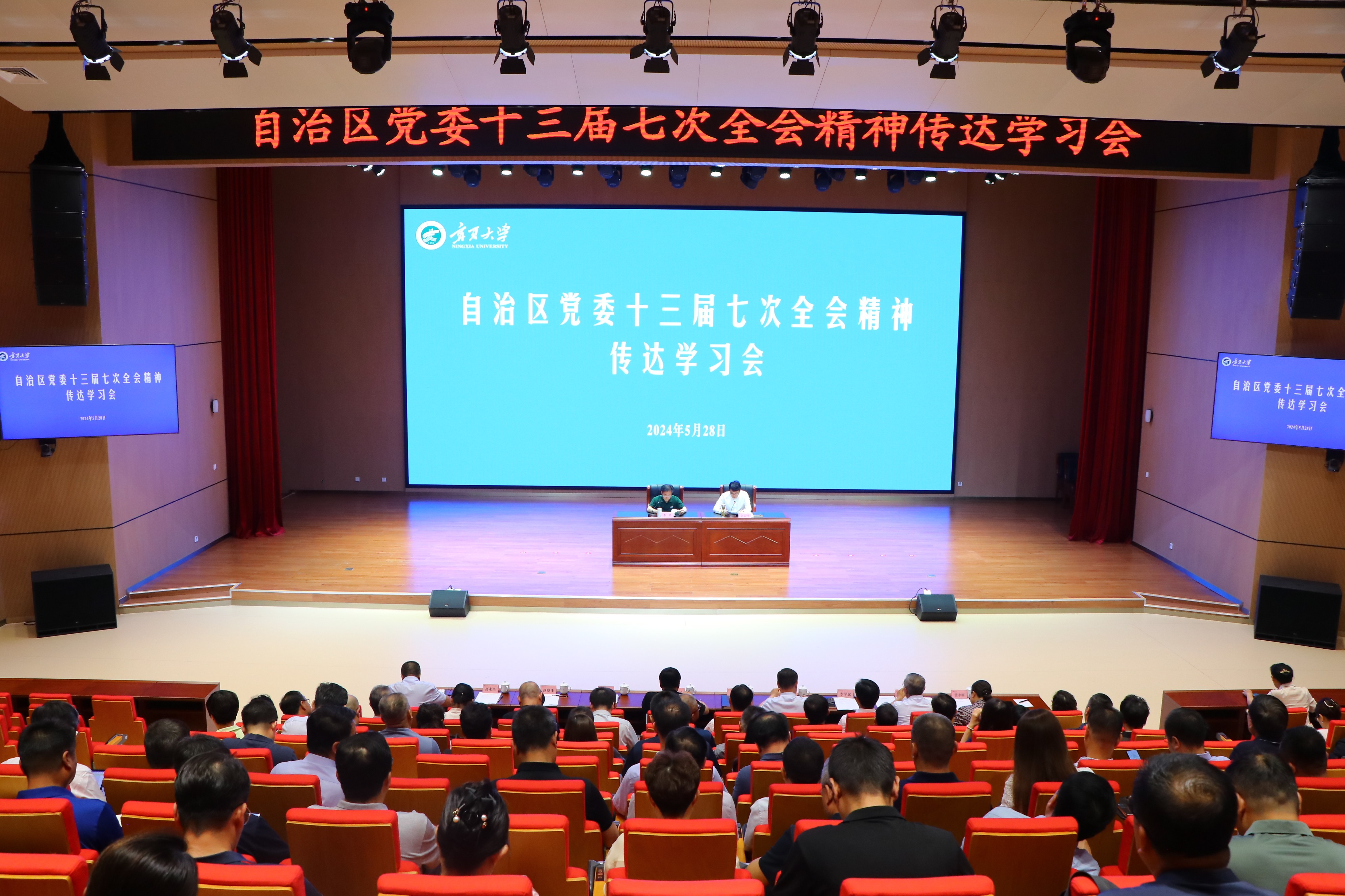 【beat365唯一官方网站新闻中心讯 杨雯/文、图】5月27日,中国共产党宁夏回族自治区第十三届委员会第七次全体会议在银川召开。全会坚持以习近平新时代中国特色社会主义思想为指导,深入学习贯彻党的二十大精神,全面贯彻落实习近平总书记关于加强和改进民族工作的重要思想、铸牢中华民族共同体意识的重要论述、视察宁夏重要讲话指示批示精神,审议通过了《关于坚持以习近平新时代中国特色社会主义思想为指导、加快建设铸牢中华民族共同体意识示范区的意见》,对新征程上进一步做好铸牢中华民族共同体意识主线工作、有形有感有效加快示范区建设作出全面部署。5月28日,beat365官网在贺兰山校区笃行楼一楼报告厅召开自治区党委十三届七次全会精神传达学习会,并对学校贯彻落实全会精神进行统一部署。全体在校校领导参加传达学习会,校党委书记李星主持。会议传达学习了自治区党委十三届七次全会精神。会议强调,习近平总书记关于铸牢中华民族共同体意识的重要论述,进一步拓展了...