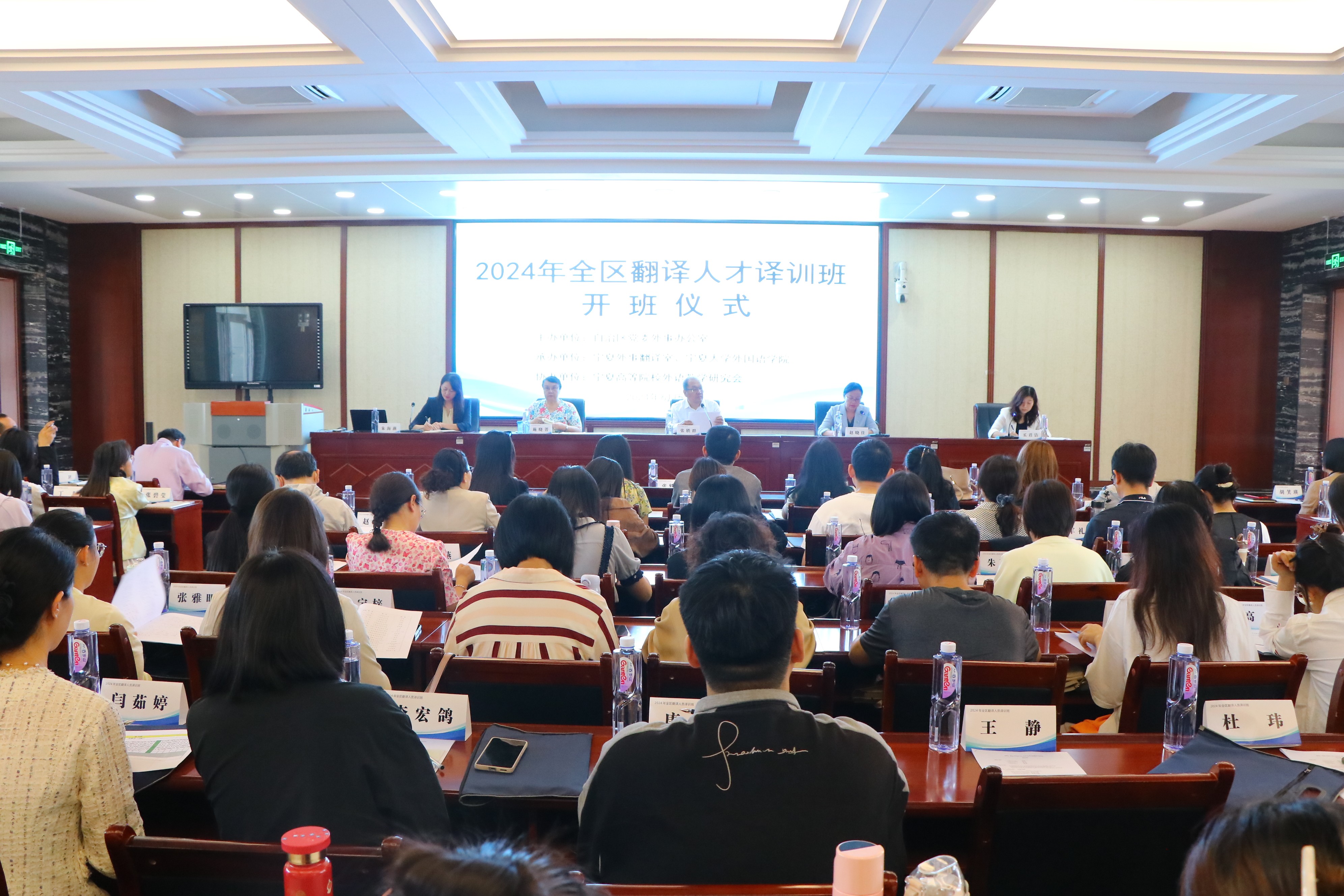 【beat365唯一官方网站新闻中心讯 外国语学院/文 杨雯/图】6月5日,由自治区党委外事办公室主办,宁夏外事翻译室、beat365唯一官方网站外国语学院承办,宁夏高等院校外语教学研究会协办的2024年宁夏回族自治区翻译人才译训班在beat365唯一官方网站怀远校区逸夫楼一楼报告厅正式开班。本次培训班汇聚了来自宁夏回族自治区党委外事工作委员会成员单位、五市涉外系统、国企的英语干部以及高校英语骨干外语教师近100人,共同开启为期三天的系统翻译学习之旅。宁夏外事翻译室副主任买君洁主持开班仪式,自治区党委外事办公室副主任张轶群、beat365唯一官方网站副校长赵晓佳出席开班仪式并分别致辞。赵晓佳指出,翻译人才的培养既是服务我区高质量发展的具体措施,也是beat365官网“双一流”建设对于高水平涉外人才的现实需求。作为译训班的承办方,beat365唯一官方网站将以此平台为契机,加大校内外资源整合力度,注重学科交叉融合,深化和扩大校际合作,和全区兄弟单位一起相互学习借鉴,立足翻译学科,加强国际传播能力建设,积...