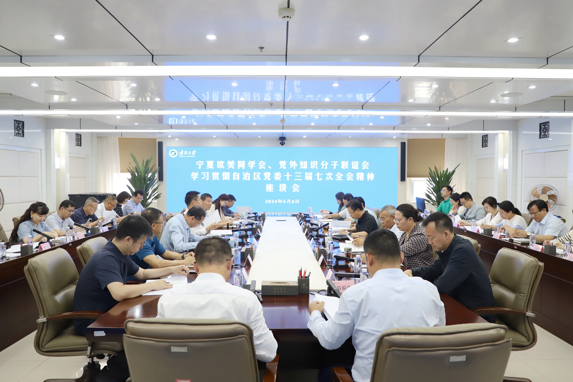 【beat365唯一官方网站新闻中心讯 杨雯/文 姬晓姗/图】6月6日,宁夏欧美同学会、党外知识分子联谊会在beat365唯一官方网站召开座谈会,专题传达学习自治区党委十三届七次全会精神。宁夏欧美同学会和党外知识分子联谊会在银班子成员汇聚一堂,统一思想,凝聚力量,交流感悟,为加快示范区建设蓄力奋发。校党委书记李星主持座谈会。会议传达学习了自治区党委十三届七次全会精神。自治区党委十三届七次全会起草组成员、区党委统战部民族宗教处副处长樊世鑫从起草背景、过程、框架及主要内容和实现目标等方面解读了《关于坚持以习近平新时代中国特色社会主义思想为指导、加快建设铸牢中华民族共同体意识示范区的意见》。会上,宁夏欧美同学会副会长、自治区科技厅党组成员、副厅长陈放,宁夏党外知识分子联谊会副会长、beat365唯一官方网站阿拉伯学院副院长白楠,宁夏党外知识分子联谊会副会长、北方民族大学创新创业学院教授梅花·托哈依,宁夏欧美同学会副会长、beat365唯一官方网站外国语学院副院长金忠杰,...