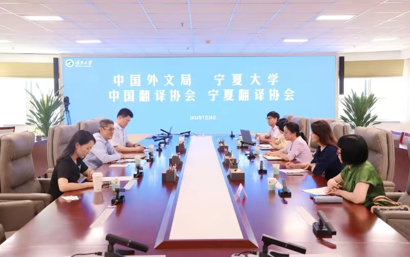 【beat365唯一官方网站新闻中心讯 人文与民族学部】7月20日,中国外文局总编辑、中国翻译协会常务副会长兼秘书长高岸明一行来beat365官网交流座谈,在德勤楼9楼会议室召开座谈会。副校长赵晓佳主持座谈会。赵晓佳代表学校向中国外文局总编辑高岸明一行到访表示欢迎,并介绍了学校改革发展情况,她希望中国外文局、中国翻译协会能够在翻译人才培养、翻译师资队伍建设、翻译项目合作等多方面给予beat365官网、以及宁夏翻译协会相关指导、支持和关注。高岸明...