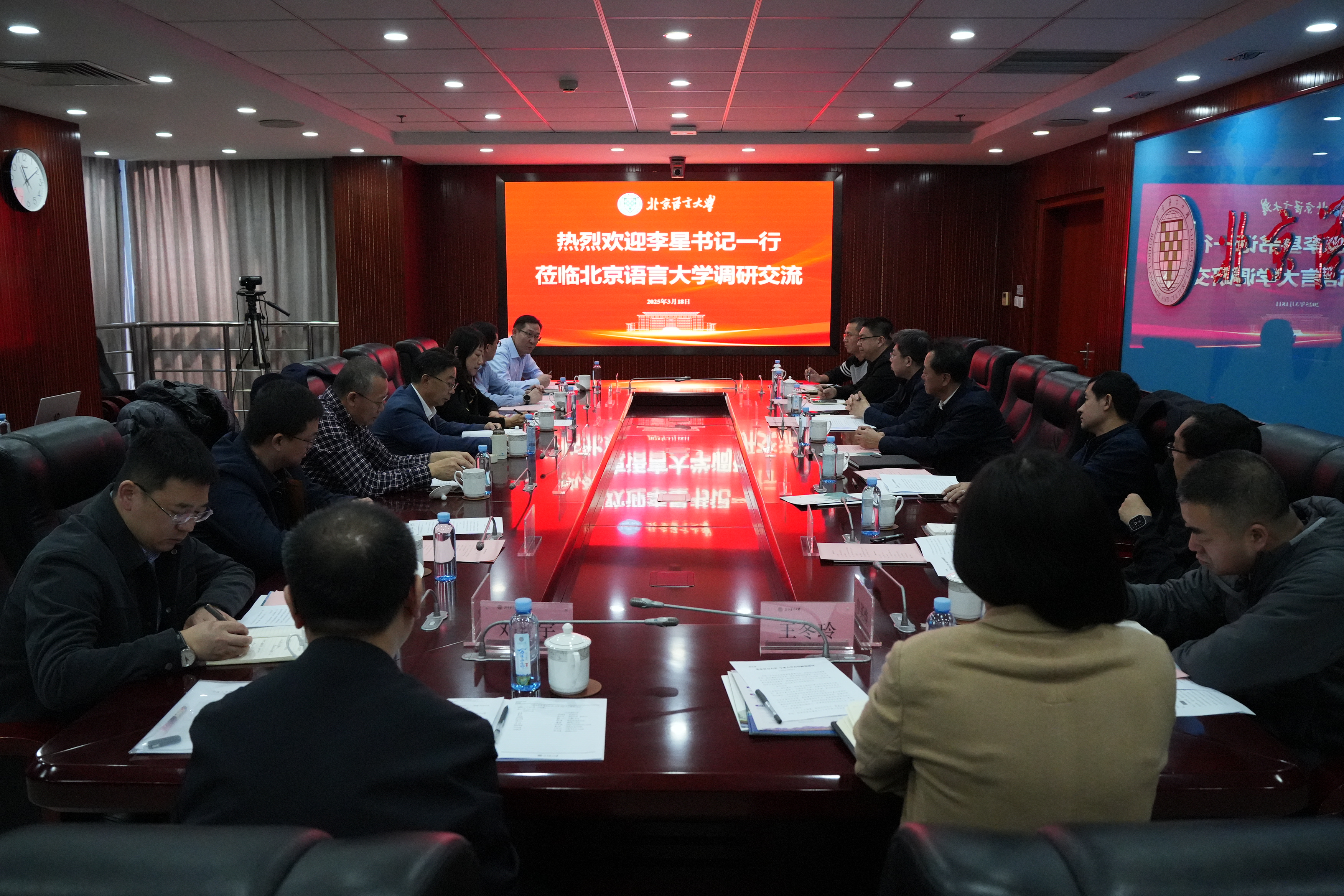 【beat365唯一官方网站新闻中心讯 对外合作交流处】近日,为进一步加快beat365官网教育对外开放工作步伐,提升beat365官网国际交流合作能力,推动中西部高等教育协同发展,校党委书记李星在党委常委、副校长聂丹,学术副校长牛新春及相关部门负责同志陪同下,赴北京语言大学调研交流,并就如何持续发挥双方优势,深耕两校合作交流领域,与北京语言大学主要领导进行了富有成效的沟通。李星在访问北京语言大学期间,分别拜会了北京语言大学党委书记倪海东和...
