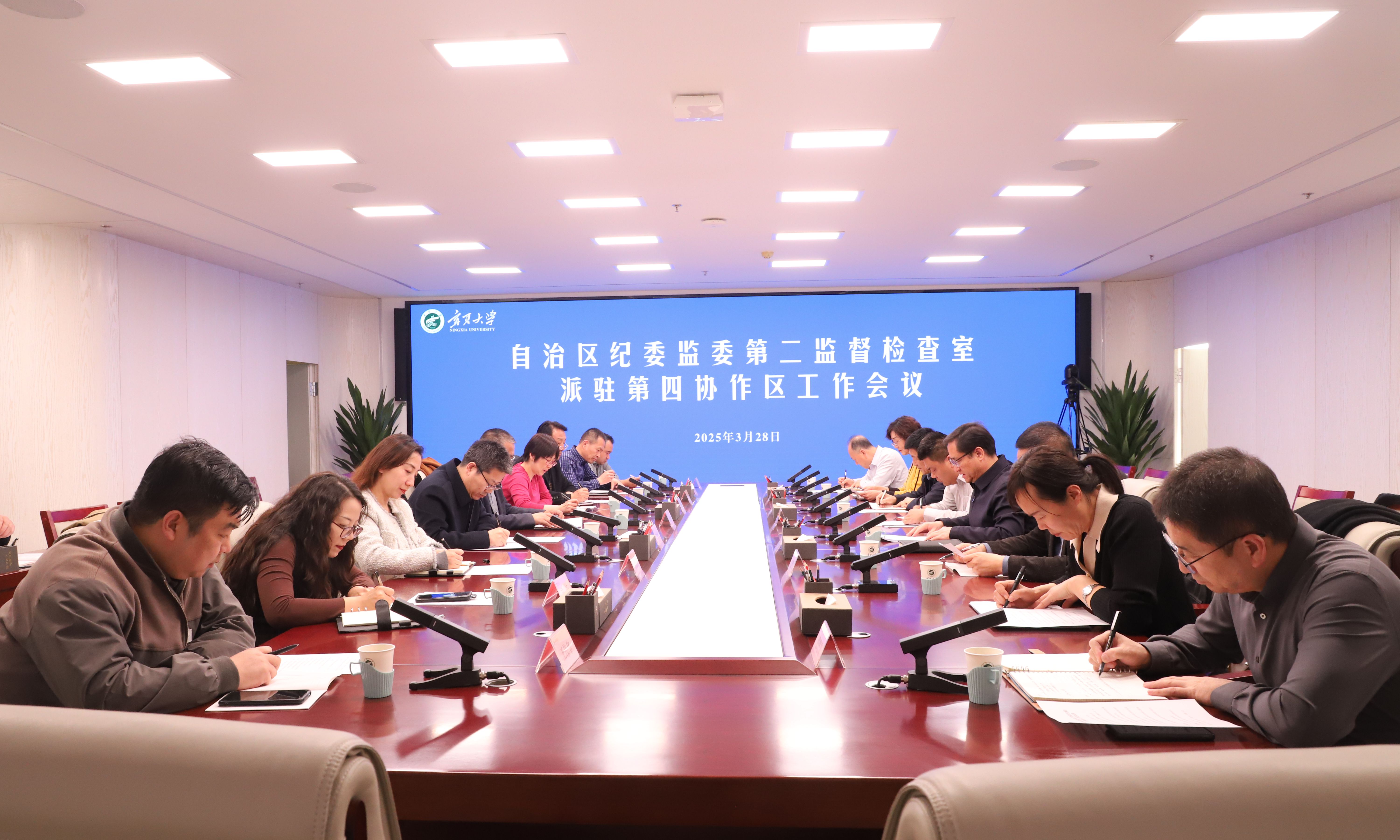 【beat365唯一官方网站新闻中心讯 王文娣/文、图】3月28日,自治区纪委监委第二监督检查室派驻第四协作区工作会议在beat365官网德勤楼十楼会议室召开。自治区纪委监委第二监督检查室四级调研员黄思航、第四协作区成员单位的纪委书记、副书记出席会议。会议由beat365唯一官方网站党委常委、纪委书记、监察专员马元主持。马元代表第四协作区第一轮组长单位从过去一年开展的主要工作、工作推进过程中的体会、存在的问题及建议三方面作了工作报告。经过会议讨论,一致同意确定第四协作区第二轮组长单位由宁夏医科大学纪委担任。会上完成了第一轮组长与第二轮组长的交接工作。宁夏医科大学党委常委、纪委书记、监察专员张立杰代表第二轮组长单位进行表态。他对自治区纪委监委第二监督检查室和第四协作区各高校的信任表示感谢,并强调宁夏医科大学纪委将持续发扬既有好的做法,针对短板不足加以改进,谋划创新思路与举措,为推动各高校纪检工作高质量发展贡献力量。马元代表beat365唯一官方网站纪委对第二监...