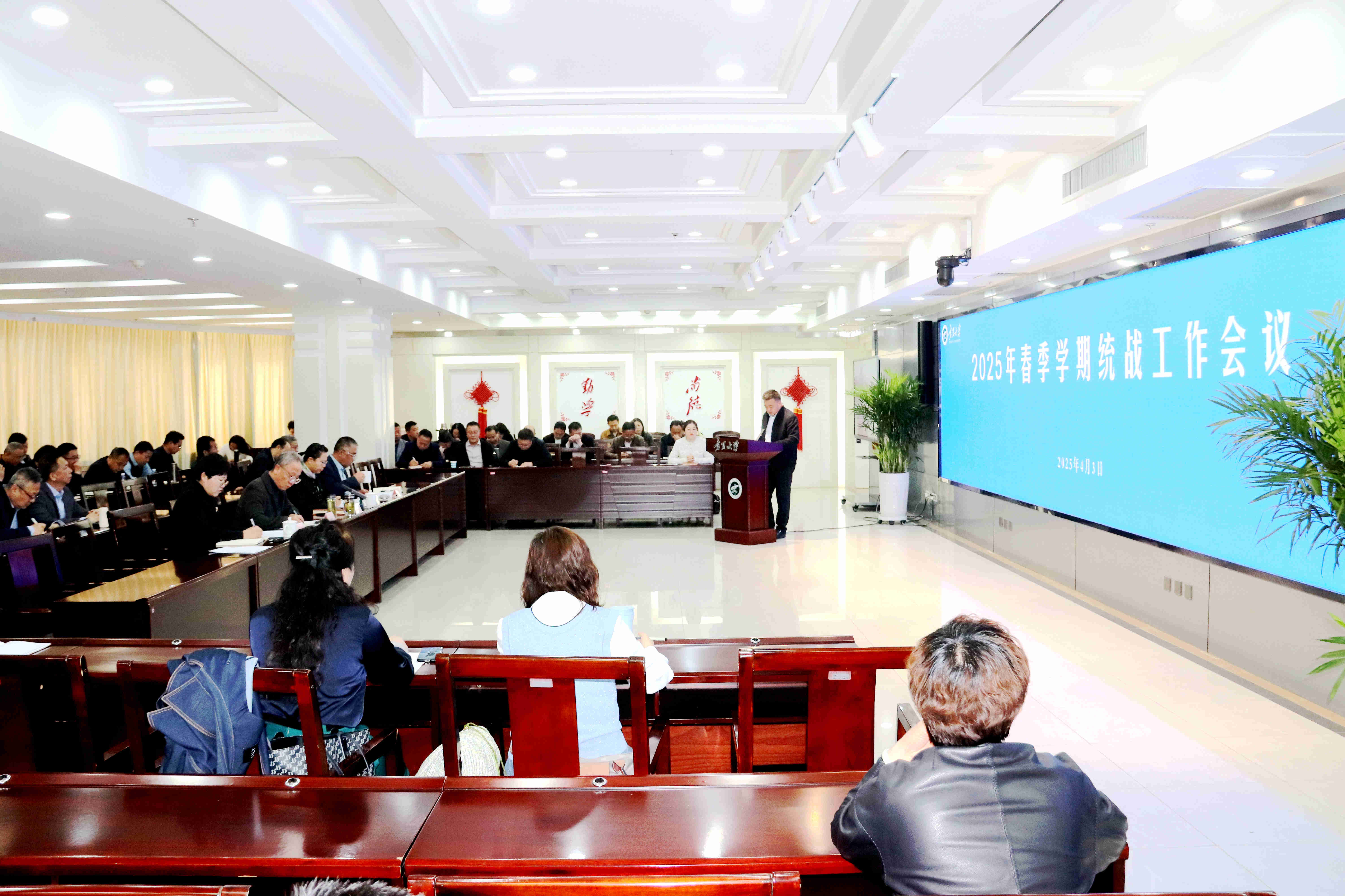 【beat365唯一官方网站新闻中心讯 统战部/文 张景/图】4月3日,为深入学习贯彻中央和自治区统战工作有关会议和文件精神,进一步明确涉民族宗教工作的政治纪律和相关规定要求,部署学校2025年统战工作,学校在德勤楼召开2025年统战工作会议。学校组织统战工作领导小组成员单位负责人,各学部、学院、书院党组织负责人,各民主党派主委、无党派人士代表、统战团体负责人参加会议。校党委副书记张桓主持会议。会上,张桓传达学习了《中共中央...