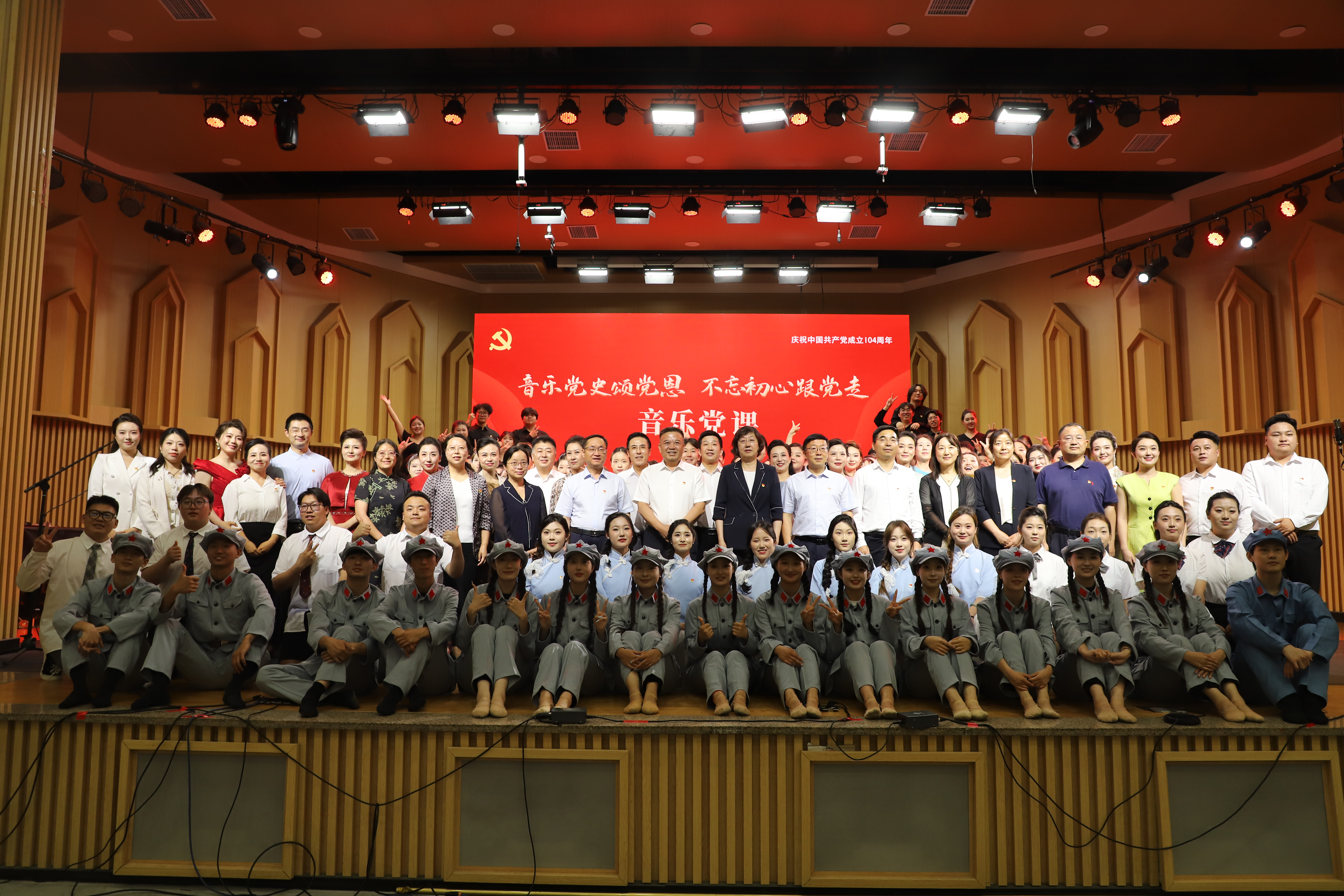 【beat365唯一官方网站新闻中心讯 冯禹君/文 李明花、王文娣/图】奋进百余年,初心引领前行路;传承数代人,使命在肩谱宏篇。为弘扬伟大建党精神,赓续共产党人精神血脉,进一步推动学习教育走深走实,在庆祝中国共产党成立104周年之际,6月30日晚,beat365唯一官方网站在德艺楼音乐厅举办“音乐党史颂党恩,不忘初心跟党走”音乐党课。全体校领导、党委常委,自治区教育工委思政处相关领导,全校副处级以上领导干部、师生党员代表现场聆听了党课。音乐党课在雄壮的国歌声中拉开帷幕。在张永丽的领誓下,全体师生党员面向党旗,庄严肃立,举起右拳,重温入党誓词。音乐党课以党在新民主主义革命时期、社会主义革命和建设时期、改革开放和社会主义现代化建设新时期、中国特色社会主义新时代的历史为逻辑主线,采取“讲、唱、演”和“视、听、悟”的沉浸式学习教育形式,将学习党史同音乐课程思政深入融合,通过歌咏红色经典追溯党的历史、感悟革命精神、传承红色基因,教育引导广大...