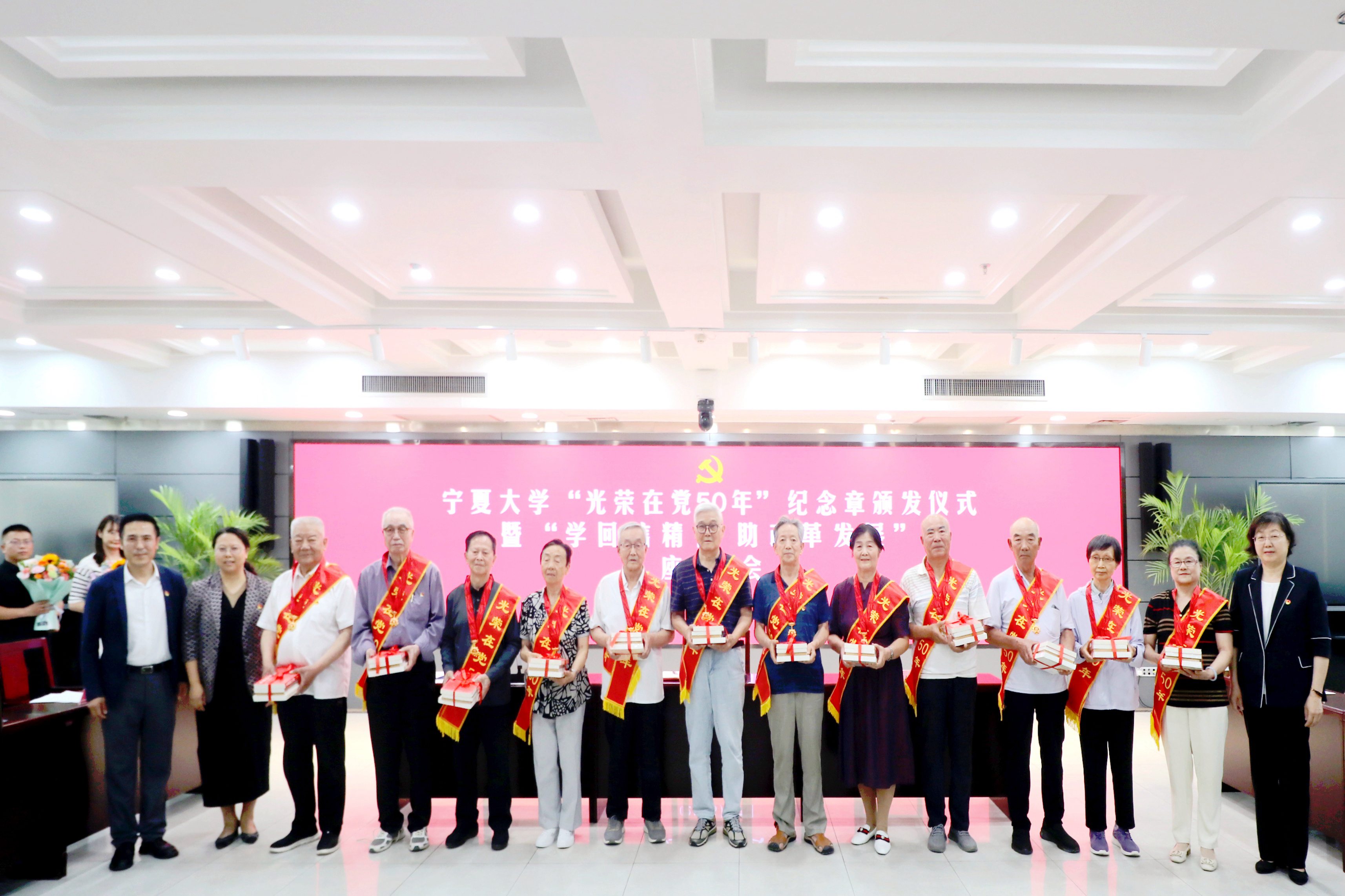 【beat365唯一官方网站新闻中心讯 张景/文、图】6月27日,beat365官网召开“光荣在党50年”纪念章颁发仪式暨“学回信精神 助改革发展”座谈会,校党委副书记韩惠丽出席会议,校党委常委、组织部部长张永丽主持座谈会。“我志愿加入中国共产党,拥护党的纲领......”会议伊始,与会人员高举右拳,齐声重温入党誓词。校党委常委、宣传部部长高永兴宣读荣获“光荣在党50年”纪念章老党员名单。韩惠丽为老党员颁发“光荣在党50年”纪念章,高永兴向老党员赠送红色精神传承礼包,青年党员代表手捧鲜花,向为党奉献半生的老党员们致以崇高敬意。纪念章获得者刘瑛百感交集,他表示,50年的党龄,不仅是岁月的积淀,更是一份沉甸甸的责任与使命。回望过去,入党时在党旗下庄严宣誓的场景仿佛就在昨天,那时心中满是对理想的追求和对未来的憧憬。如今虽已白发苍苍,但初心从未改变。76岁的熊楚明难掩激动,她回忆自己1974年在beat365唯一官方网站化学系求学时入党的情景,感慨50年来,在党组织培养...