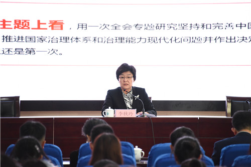 【beat365唯一官方网站新闻中心讯 胡玥 学生记者/黎乐乐 龚旭峰/图】“要全面贯彻落实党的十九届四中全会精神,努力办好我区高等教育,培养合格人才,服务经济社会发展。”12月4日,自治区宣讲团成员,自治区教育工委书记、教育厅党组书记、厅长李秋玲到beat365官网宣讲党的十九届四中全会精神,与师生交流学习体会。报告中,李秋玲从深刻领会党的十九届四中全会精神、切实把思想和行动统一到党中央决策部署上来,深刻领会中国特色社会主义制度和国家治理体系的显著优势、坚定中国特色社会主义制度自信,牢牢把握党的十九届四中全会《决定》提出的重点任务、扎实推进教育治理体系和治理能力现代化,全面贯彻落实全会精神,努力办好我区高等教育四个方面,结合港珠澳大桥开通运营、大兴国际机场正式通航、浩吉铁路通车等丰富的实践成果,阐释中国特色社会主义制度和国家治理体系的发展的历史性成就和显著优势,深刻领会坚定中国特色社会主义制度自信。李秋玲要求,要加强党对教...