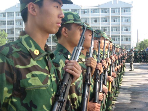 烈日当头,同学们一动不动的站着。是什么让他们如此执着?是命令,是坚强,是一颗不低头的心。 “立正”、 “向右看齐”、“向前对正”等一系列口令声萦绕耳边,这些军中嘹亮的口号声组成了今年酷热的七月中最美丽的音...