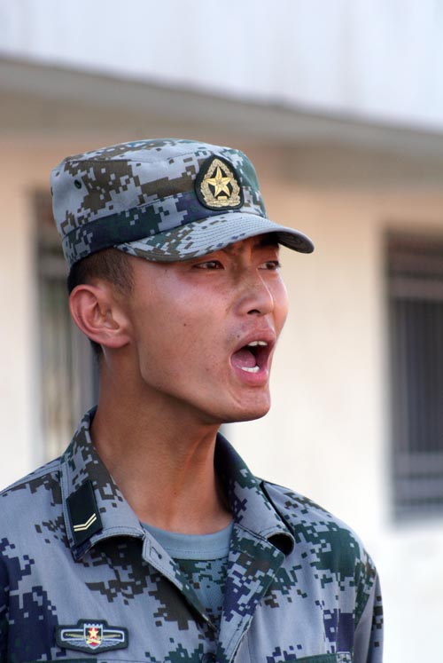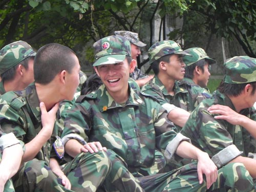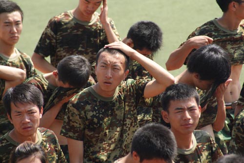 参训学生与教官交谈 整齐的步伐 指挥唱歌 步伐整齐