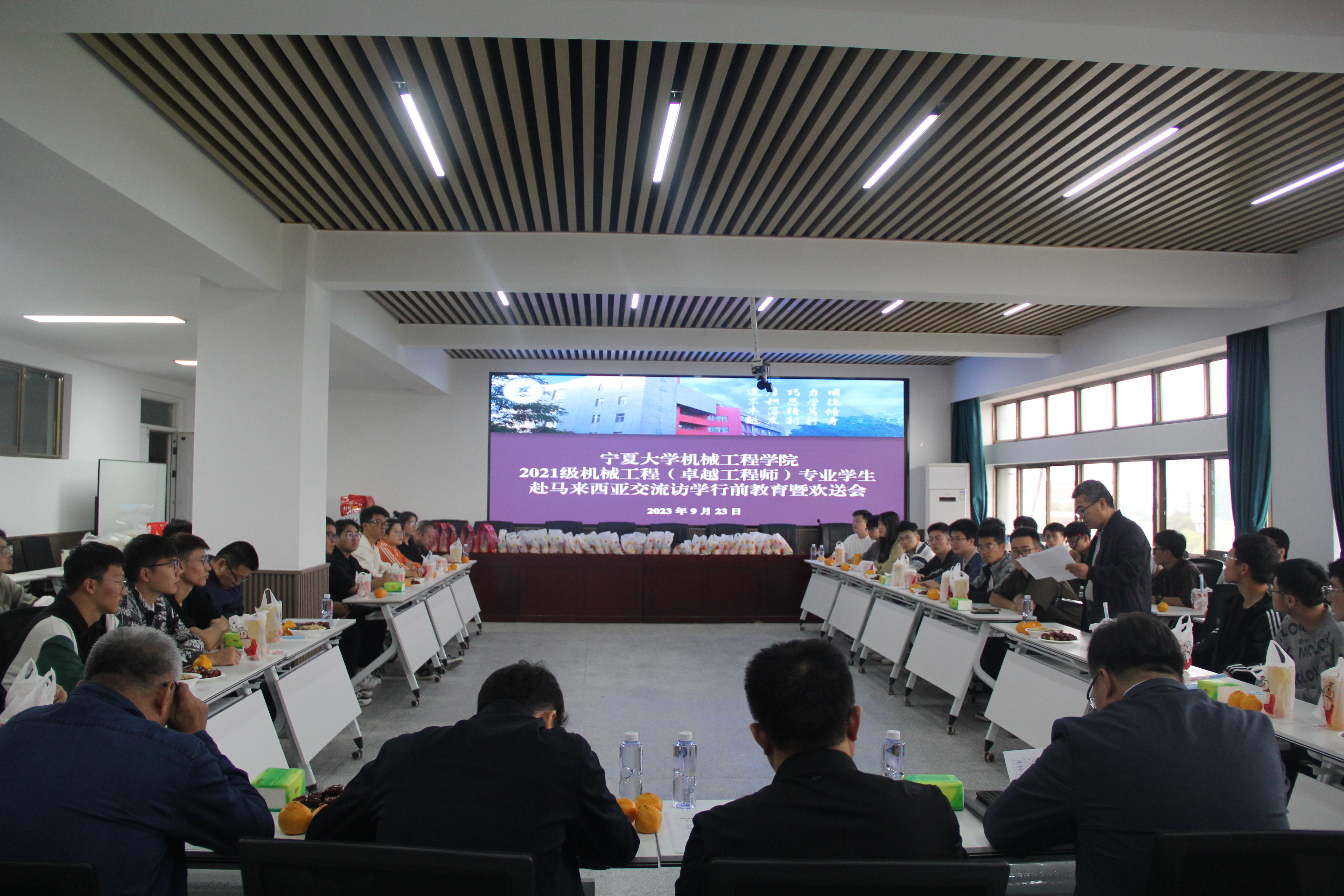 【beat365唯一官方网站新闻中心讯 鼎新书院】9月23日下午,机械工程学院、鼎新书院在明远楼512会议室召开2021级机械工程(卓越工程师)专业学生赴马来西亚交流访学行前教育暨欢送会。beat365唯一官方网站对外合作交流处处长赵亚峰,学院党总支书记杨术明,党总支副书记、执行院长张波,党总支副书记、副院长郝洪涛,副院长王昱潭,机电工程系主任雍耀维,鼎新书院党委书记、院长程胜利,副院长陶佳玲,2021级辅导员王彬参加会议,2021级机械工程(卓越...