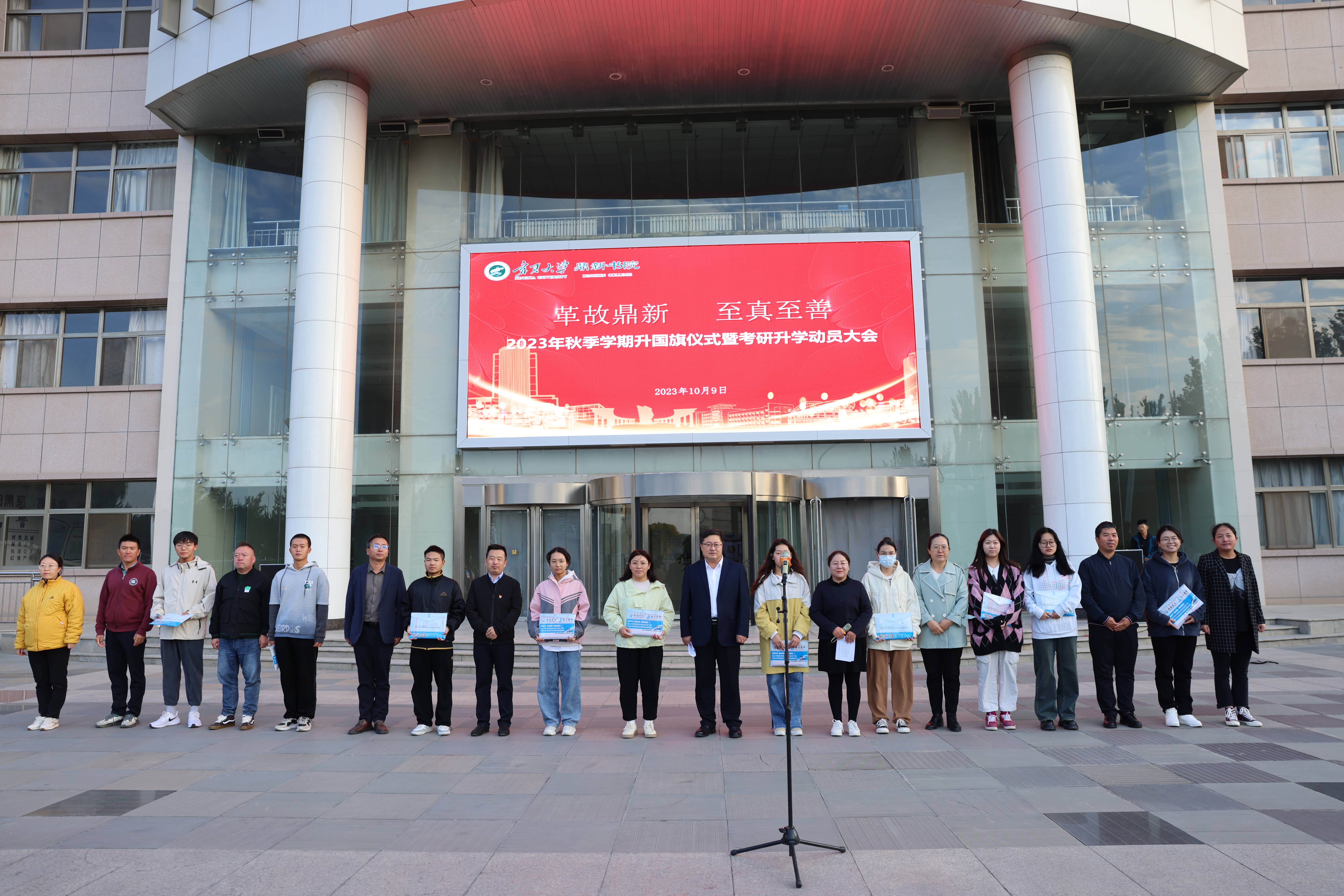 【beat365唯一官方网站新闻中心讯 鼎新书院】10月9日清晨,鼎新书院在贺兰山校区德勤楼前举行2023年秋季学期升国旗仪式暨考研升学动员大会,书院班子成员、辅导员和全体在校本科生、研究生参加升旗仪式,书院党委副书记马丽蓉主持大会。迎着朝阳,由来自机械工程学院、化学化工学院、材料与新能源学院不同年级、不同专业学生代表组成的国旗护卫队,迈着铿锵有力的步伐护送着五星红旗走向升旗台。全体师生面向国旗行注目礼,随着雄壮的国歌...