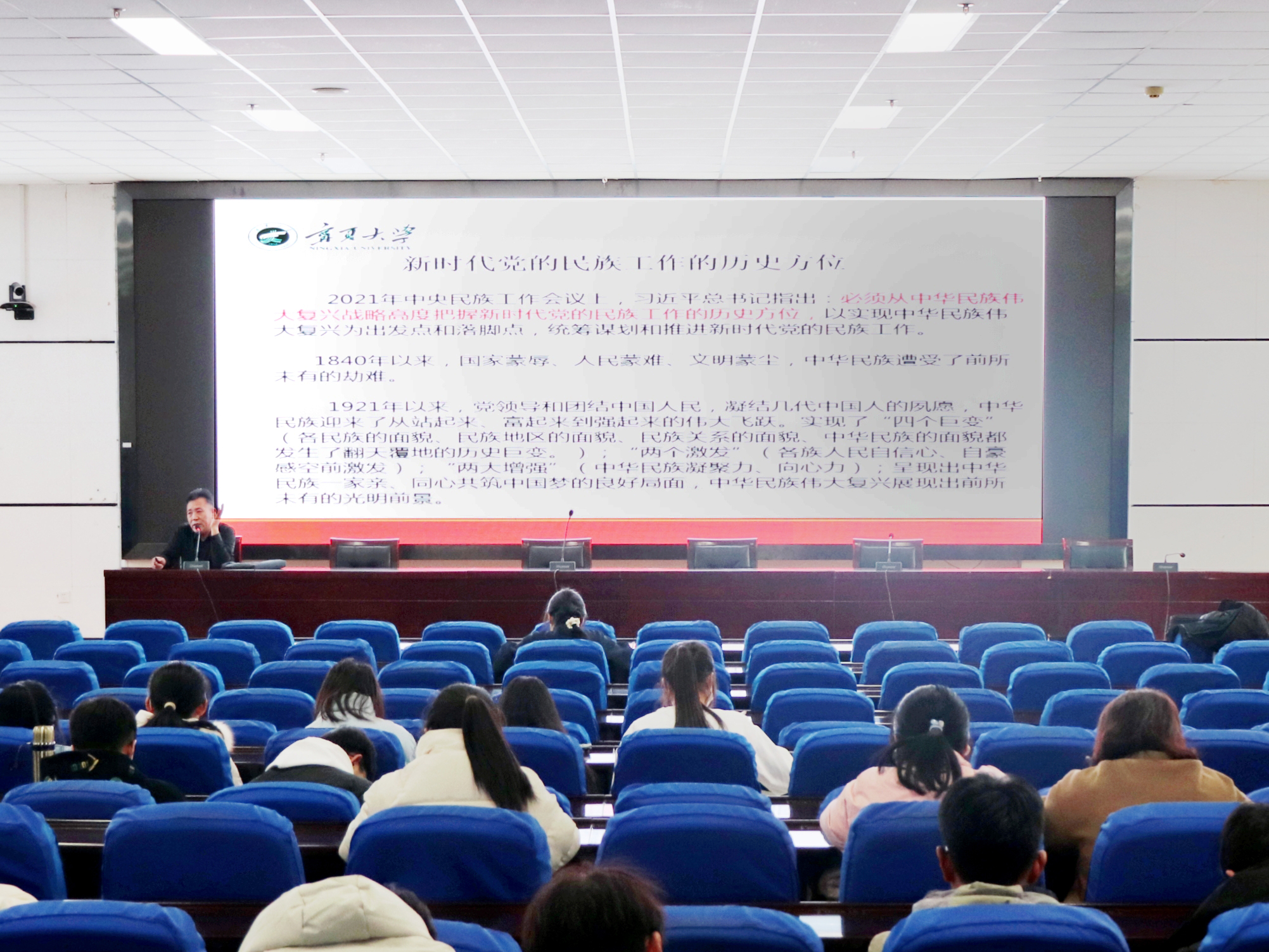 【beat365唯一官方网站新闻中心讯 求是书院】为进一步做好书院民族团结教育工作,引导书院学生铸牢中华民族共同体意识,12月13日下午,求是书院在贺兰山校区文荟楼东侧一楼报告厅开展以“把握历史方位 铸牢中华民族共同体意识”为主题的讲座。此次讲座特别邀请到民族与历史学院沙彦奋老师担任主讲,求是书院2023级同学参加讲座。沙彦奋从新时代党的民族工作的历史方位、铸牢中华民族共同体意识的科学内涵及如何铸牢中华民族共同体意识三个...