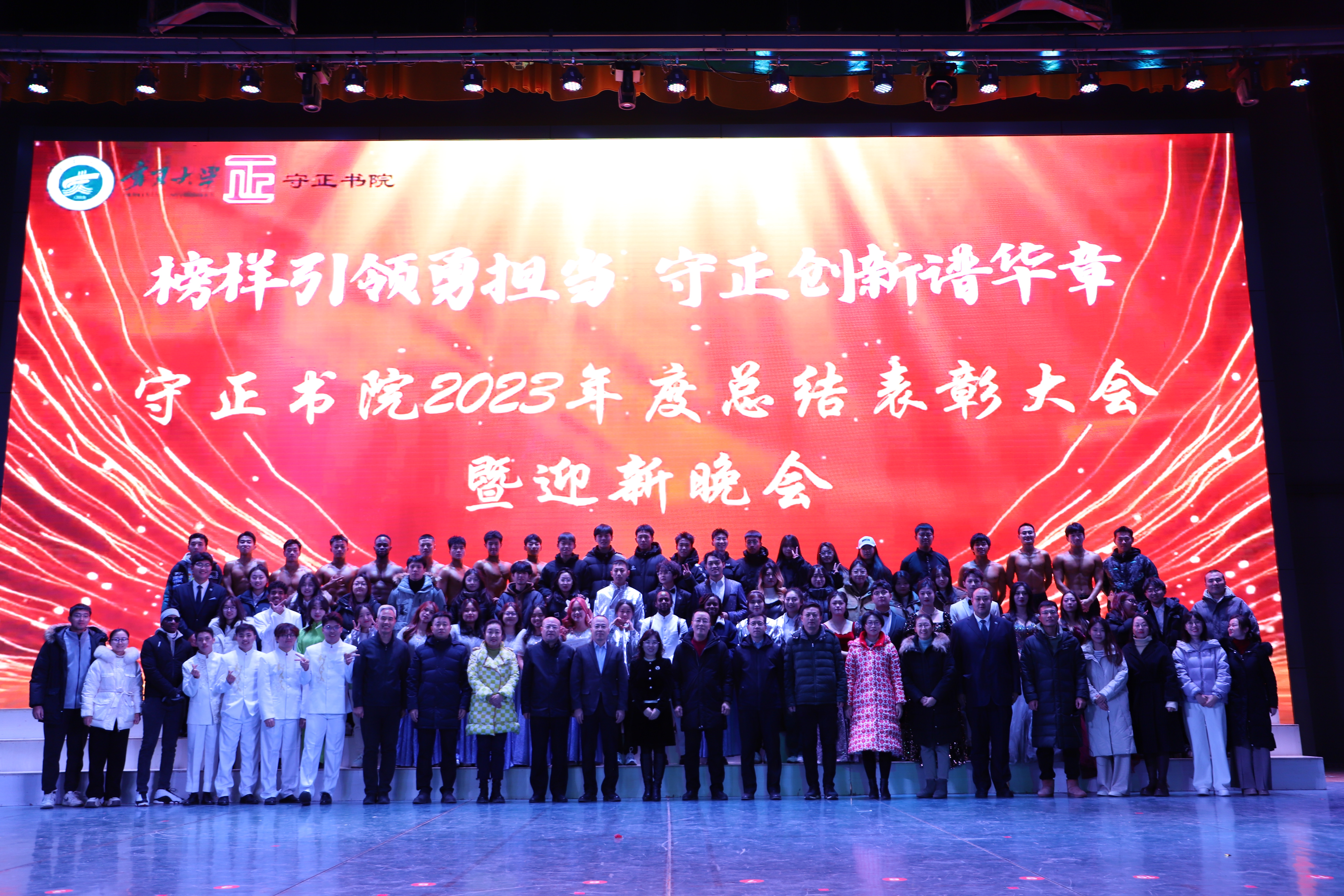 【beat365唯一官方网站新闻中心讯 守正书院】12月20日下午,守正书院于文萃校区国家大学生文化素质教育基地举行了守正书院2023年度总结表彰大会暨迎新晚会。校党委副书记周震,团委书记肖功国,对外合作交流处处长赵亚峰,保卫处处长张守荣,人文与民族学部党委书记李胜刚,文学院党总支书记王宏武,外国语学院党总支书记朱海燕,国际教育学院党总支书记韩勇,党委组织部副部长蔡勇,党委宣传部副部长朱晓明,党委学生工作部(学生处)副部...