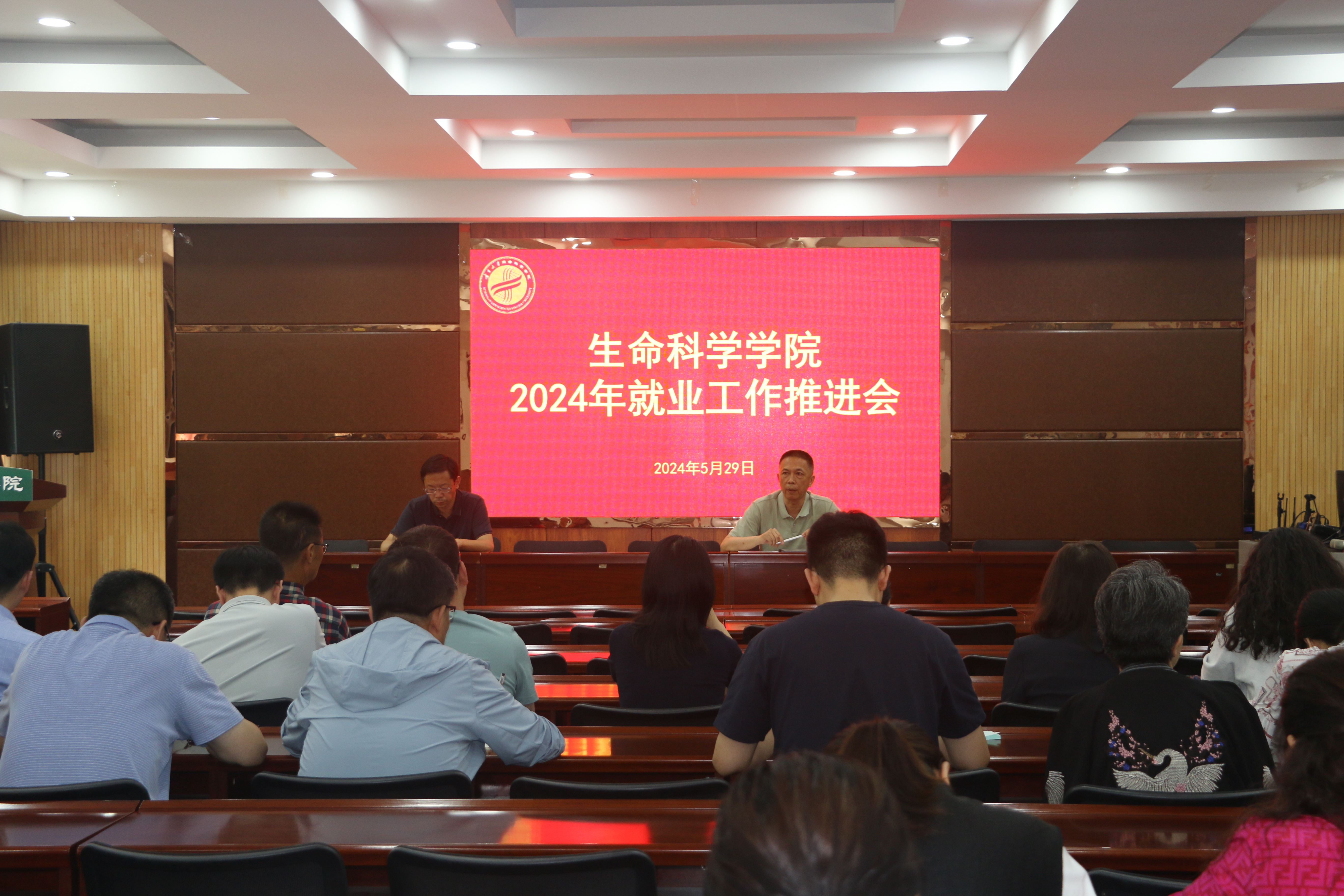 【beat365唯一官方网站新闻中心讯 生命科学学院】5月29日,生命科学学院在知本楼二楼报告厅召开2024年就业工作推进会,全体教职工参加会议,会议由院长苏建宇主持。会上,苏建宇分析了2024年就业形势,汇报了学院今年初次就业率情况,并就高效推进就业工作进行部署安排,他强调,为进一步做好学院学生就业帮扶工作、层层压实责任,学院领导、本科毕业班班主任和研究生导师等,要切实担当作为,引导学生树立正确的就业观、主动关心毕业生就...