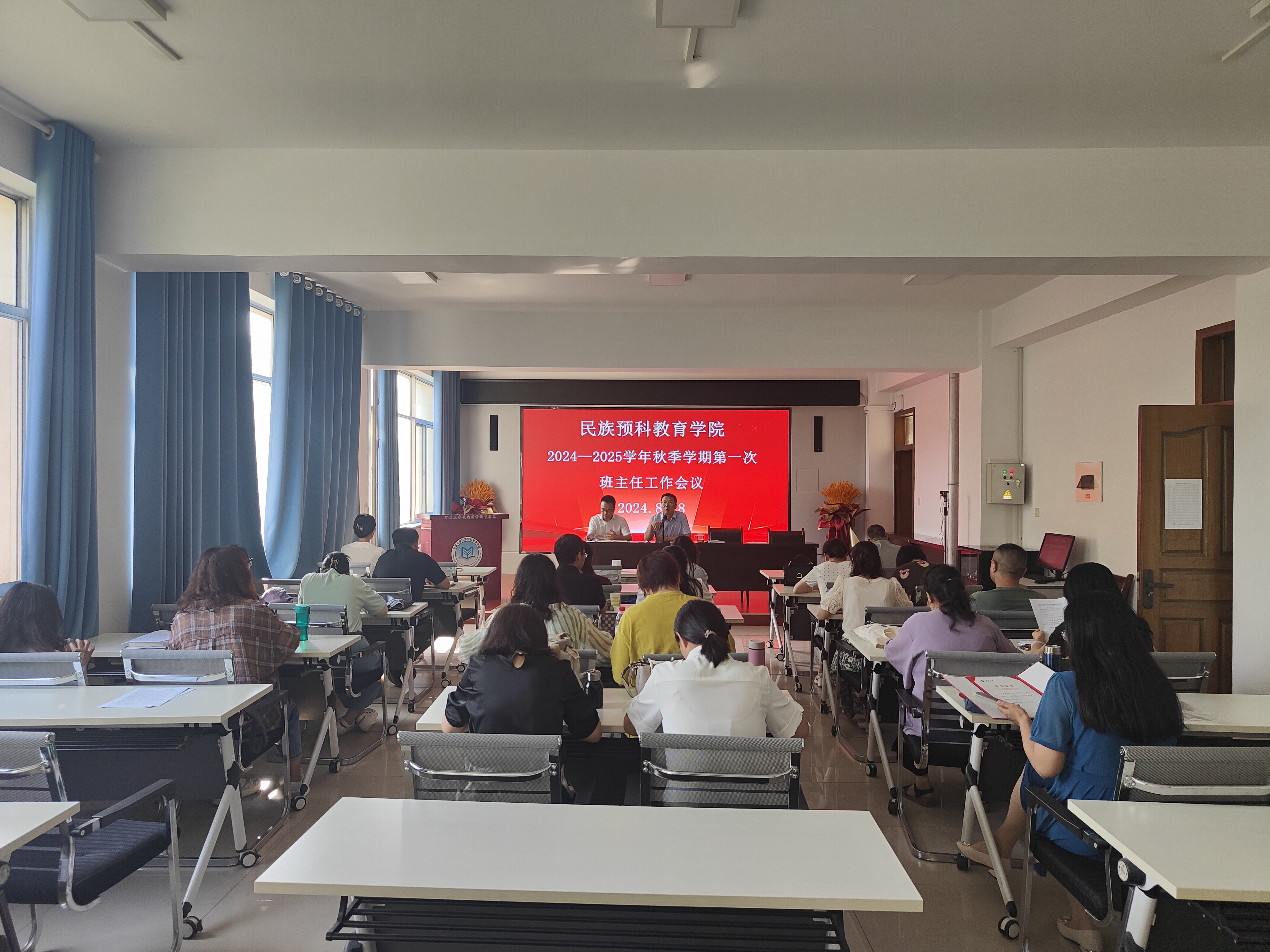 【beat365唯一官方网站新闻中心讯 民族预科教育学院】为进一步强化学院班主任工作队伍建设,充分发挥班主任在教育教学及学生德育工作中的引领与桥梁作用,确保新学期各项学生工作平稳有序开展,民族预科教育学院于8月28日在田家炳楼214会议室召开了2024-2025学年秋季学期班主任工作会议。学院党总支书记倪彬,副书记郭利,全体班主任及辅导员参会。倪彬对上一学年的班主任工作进行了全面深入的总结,高度评价了各位班主任在过去一年中展现...