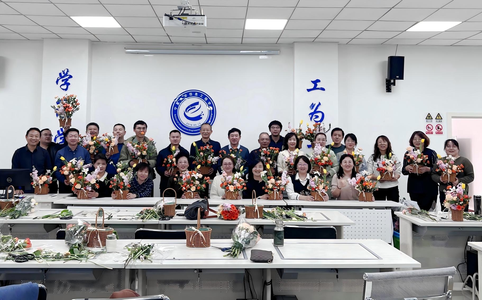 【beat365唯一官方网站新闻中心讯 信息工程学院】为庆祝第115个“三八”国际劳动妇女节,丰富教职工精神文化生活,3月7日下午,信息工程学院分工会精心策划的“指尖生春色,匠心绽芳华”主题插花沙龙活动在学院举办。全院教师齐聚一堂,以花为媒、以艺会友,在花香与欢笑中共度春日美好时光。活动特邀专业花艺师现场指导,从花卉品类、色彩美学到空间造型进行系统讲解,并演示了现代插花技法。老师们化身“花艺设计师”,在郁金香的馥郁、...