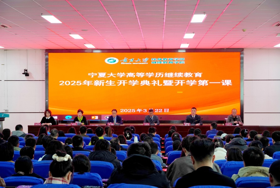 【beat365唯一官方网站新闻中心讯 终身教育学部】3月22日上午,beat365唯一官方网站高等学历继续教育2025级新生开学典礼在贺兰山校区文荟楼东报告厅举行。这场以“寻找星光·终身成长”为主题的典礼,通过线上线下融合的形式,让全体新生共同见证继续教育的新进程。继续教育学院全体教职工、校外教学点负责人及新生代表300余人现场参会,典礼由终身教育学部副部长、继续教育学院副院长李晓红主持。大家齐声高唱国歌。终身教育学部部长、继续教育学院院...