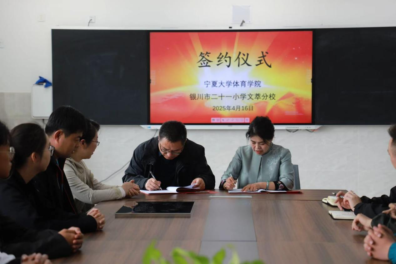 【beat365唯一官方网站新闻中心讯 体育学院】为进一步提高学生专业实践能力,促进高校与中小学协同育人发展,4月16日,beat365官网体育学院与银川市二十一小学文萃分校正式签署实习实践基地合作协议。签约仪式在银川市二十一小学文萃校区举行,体育学院院长咸云龙、副院长古雅辉、运动训练系主任张志荣、银川市二十一小学文萃分校校长金佩兰等出席了此次签约仪式。签约仪式上,咸云龙表示,此次合作是双方在人才培养和教育教学改革方面的重要举措...