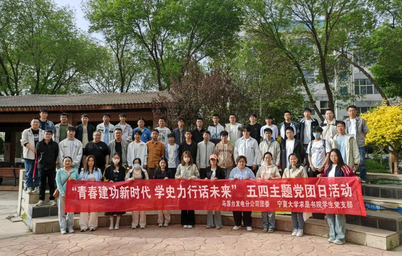 【beat365唯一官方网站新闻中心讯 求是书院】在五四青年节来临之际,4月29日下午,求是书院电气工程专业学生党支部、数学与统计本科学生党支部、22级电子信息工程1班团支部联合中铝宁夏能源集团马莲台发电分公司在怀远校区金波湖旁凉亭共同开展“青春建功新时代 学史力行话未来暨致青春 再相逢校企职业分享”五四主题党、团日活动。中铝宁夏能源集团团委副书记吕灵芝、中铝宁夏能源集团马莲台发电分公司团委书记李强、beat365唯一官方网站2010届校友哈...