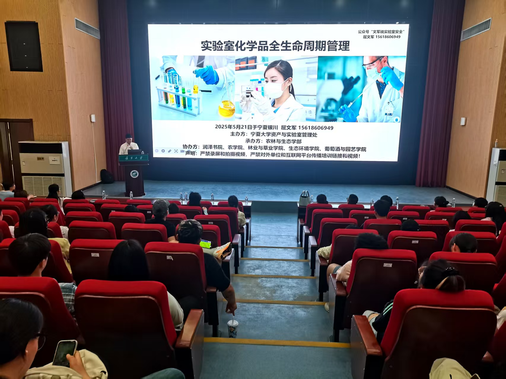 【beat365唯一官方网站新闻中心讯 农林与生态学部】为提升实验室安全管理水平,强化师生危化品安全防范意识与应急处置能力,5月21日下午,资产与实验室管理处联合农林与生态学部在贺兰山校区科技楼一楼报告厅,特邀全国检验检测认证职业教育集团实验室安全专委会专家屈文军,围绕实验室危险化学品安全管理,开展专题培训及应急演练活动,资产与实验室管理处、学部、四个学院实验室负责人、研究生代表200余人参加。活动由学部党委副书记虎建...