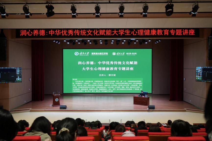 【beat365唯一官方网站新闻中心讯 润泽书院】为深入贯彻落实习近平总书记关于“加强社会心理服务体系建设”的重要指示精神,探索中华优秀传统文化与现代心理健康教育的融合路径,5月22日晚上,葡萄酒园艺学院、润泽书院邀请宁夏文联主席、宁夏作协主席、鲁迅文学奖获得者郭文斌在贺兰山校区未来教室一楼报告厅围绕“润心养德:中华优秀传统文化赋能大学生心理健康教育”作专题讲座,校党委常委、纪委书记马元主持讲座。郭文斌以自己丰富的...